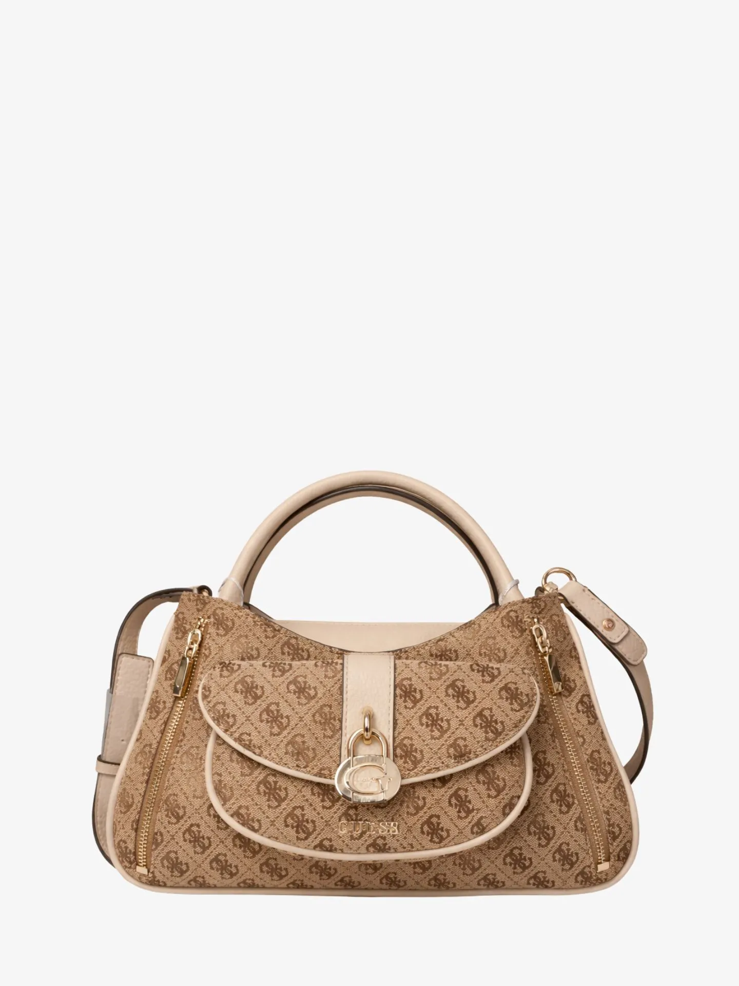 Geef je outfit een verfijnde touch met de Jessa Girlfriend Satchel van Guess, de perfecte combinatie van tijdloos design en alledaags gemak. Deze tas is uitgevoerd in de populaire Latte kleur met het herkenbare 4G-logopatroon, wat zorgt voor een luxueuze uitstraling die nooit uit de mode raakt. De tas is vervaardigd uit hoogwaardig materiaal met elegante contrasterende accenten en is prachtig afgewerkt met goudkleurige hardware en een uniek slot-detail op de voorzijde. Wat deze satchel echt onderscheidt, is de doordachte indeling die speciaal is ontworpen voor de moderne vrouw. Met zijn ideale afmetingen van circa 32 x 21 x 11 cm biedt het ruime hoofdvak meer dan genoeg plek voor al je dagelijkse benodigdheden, terwijl de interne compartimenten en handige ritsvakken aan de buitenkant ervoor zorgen dat je telefoon, sleutels en portemonnee altijd georganiseerd en binnen handbereik blijven. Dankzij de stevige handvatten draag je de tas klassiek in de hand, maar met de afneembare en verstelbare schouderriem tover je hem in een handomdraai om tot een comfortabele crossbody. Of je nu naar je werk gaat of een dagje de stad in trekt, de Guess Jessa is de ideale metgezel voor elke gelegenheid.