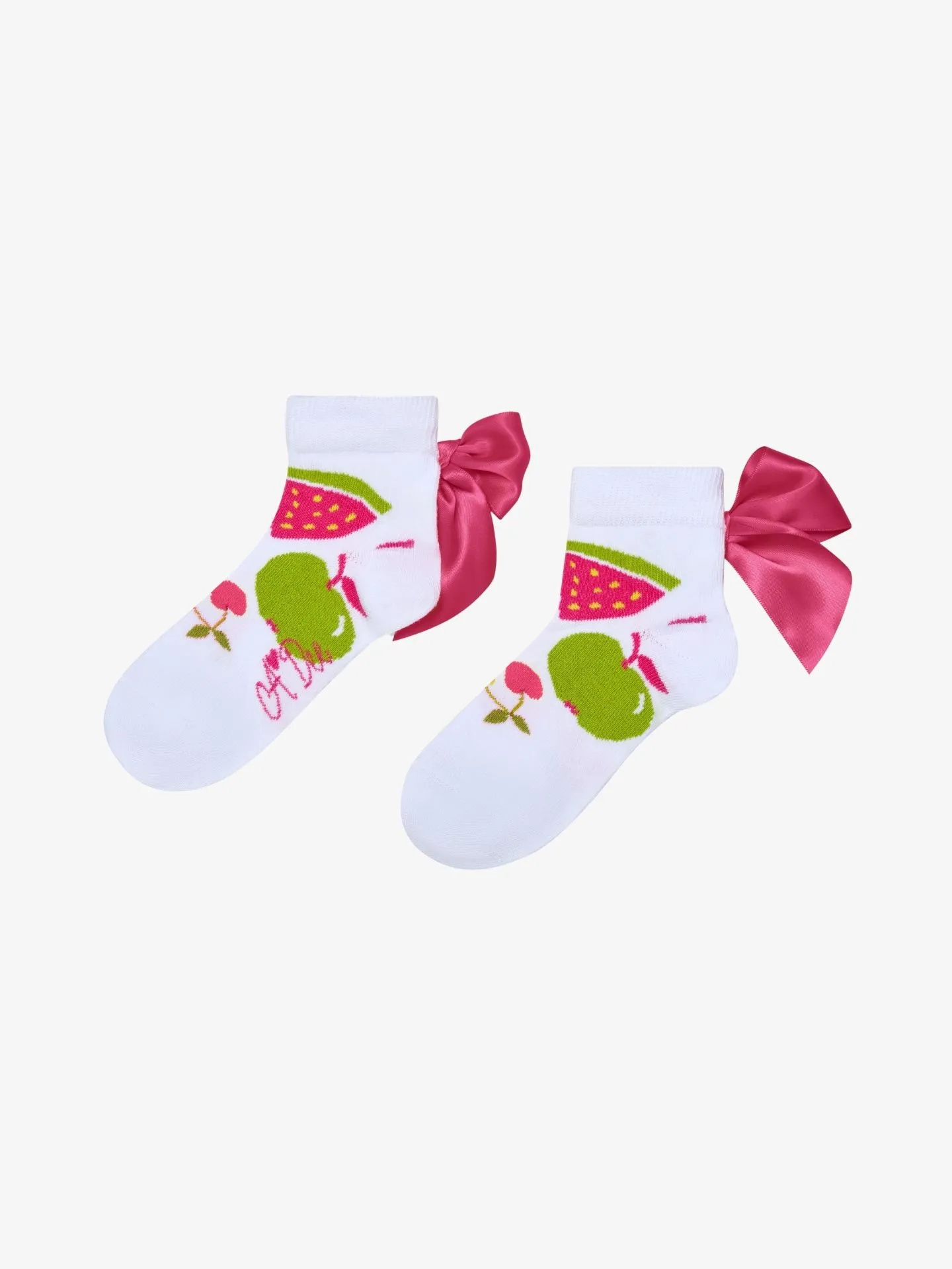 Katoenen sokken met grote strik van het merk Adee. Combineer de enkelsokken met strik met de andere items van de Tutti Frutti lijn voor een complete look.