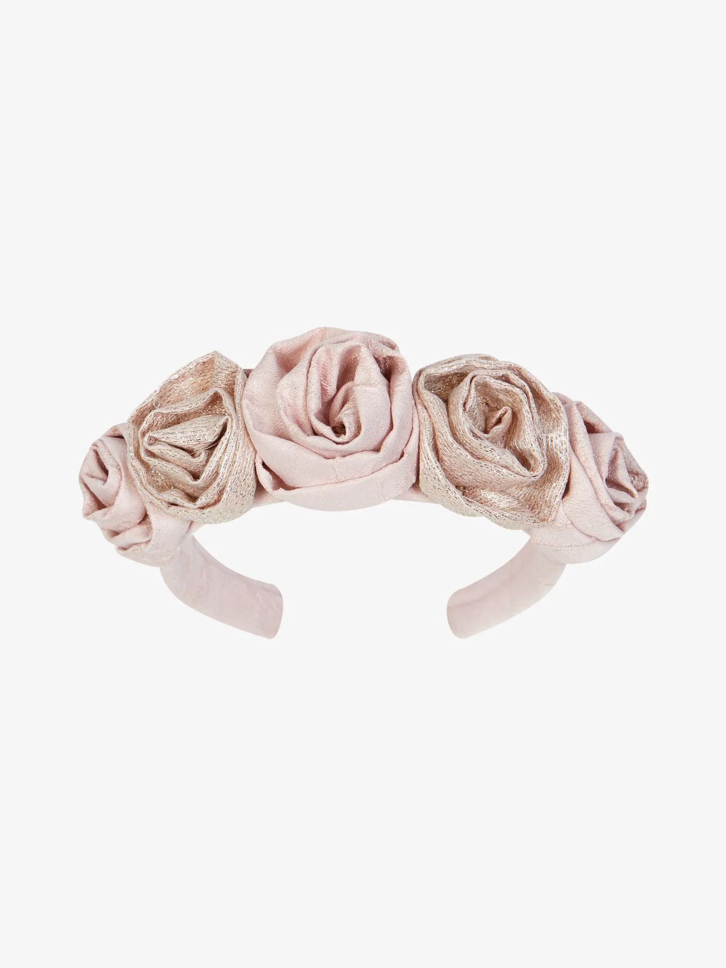 Haarband van het Portugese merk Deolinda. De haarband in de kleur Dusky Roze is bewerkt met glitter rozenbloemen. Combineer de haarband met de bijpassende 3-delige kleding set en de tas voor een complete look.