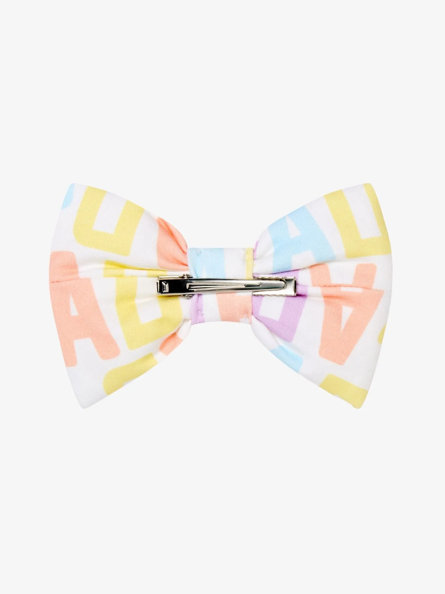 Haarclip Sami van het Britse merk Adee. Maak elke Signature Summer-outfit compleet met de Sami-haarclip, voorzien van een strik met initialenprint op een zilverkleurige clipsluiting.