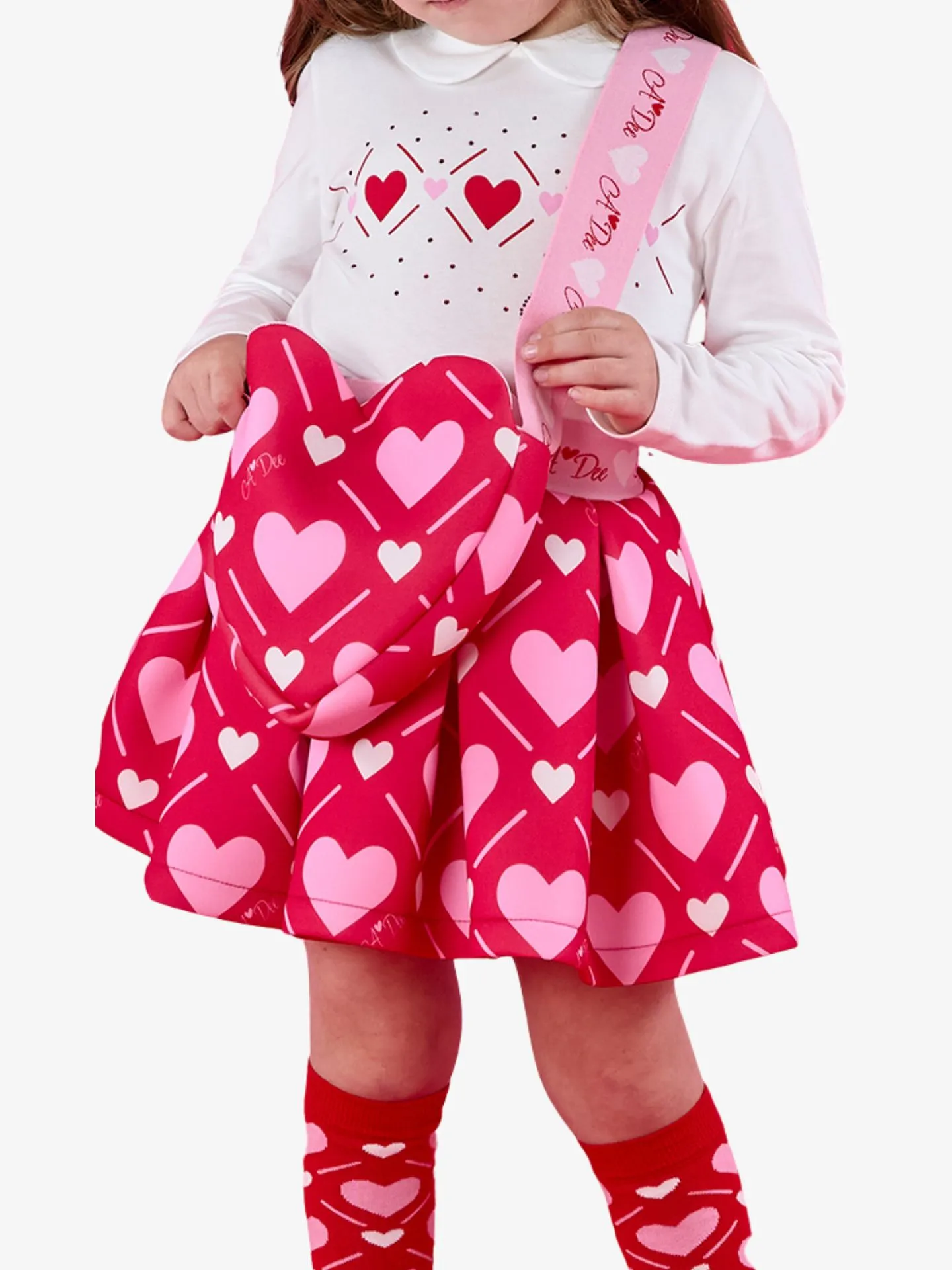 De Louise tas heeft een hartjesprint, een hartvorm en een elastische logoband, waardoor hij zowel modieus als functioneel is. Met de handige drukknoopsluiting is hij perfect om elke Love Story-outfit compleet te maken.
