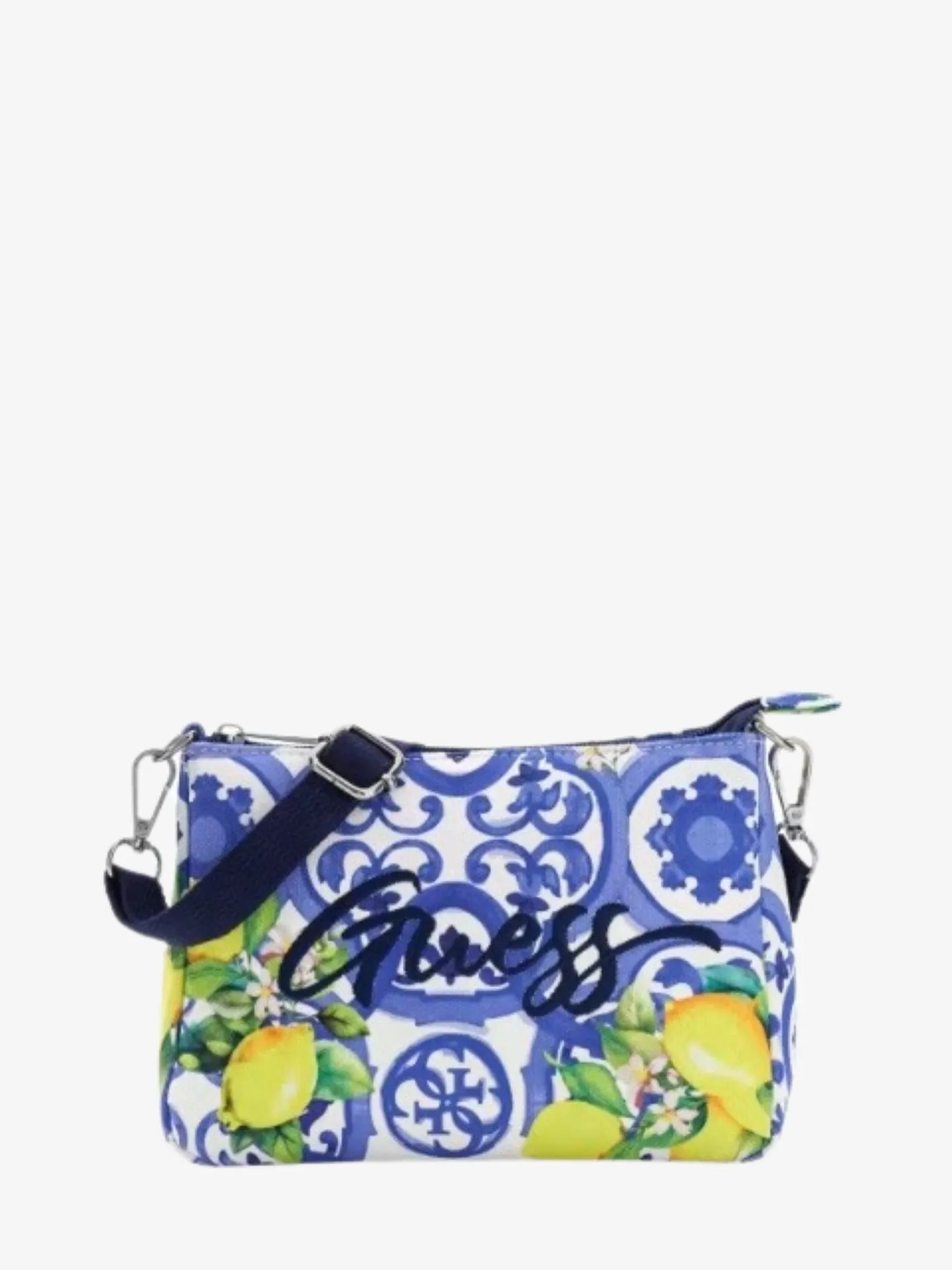 Maak de mediterrane zomerlook van je kleine meid compleet met deze stijlvolle Printed Pochette van Guess Kids. Dit tasje ademt de sfeer van de Amalfikust dankzij de schitterende combinatie van een klassiek blauw-wit tegelmotief en een vrolijke print van zonnige gele citroenen. Deze pochette is de perfecte match met de overige items uit de Lemon Mediterranean-collectie, zoals de bijpassende bikini en slippers. Het tasje is vervaardigd uit hoogwaardig, stevig canvas katoen, wat zorgt voor een duurzame kwaliteit die perfect is voor dagelijks gebruik. Het ontwerp is zowel praktisch als modieus, met een veilige ritssluiting aan de bovenzijde en een verfijnd geborduurd Guess-logo op de voorzijde voor een herkenbare, luxe uitstraling.