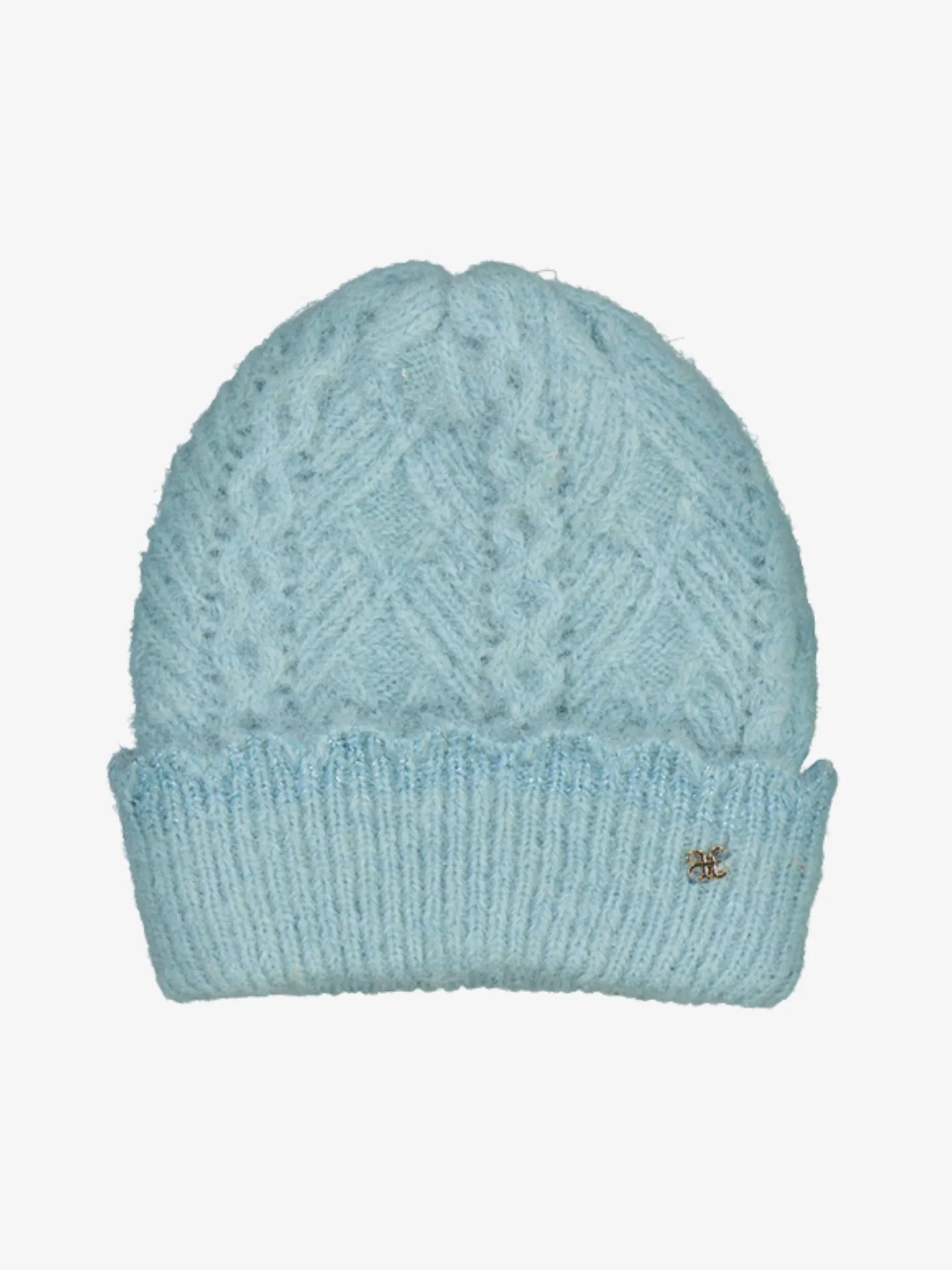 Fijn gebreide muts van het Spaanse merk Abel & Lula. De muts heeft een, omslag en een metalen logo aan de voorzijde. Combineer de muts met de bijpassende jas voor een complete look.