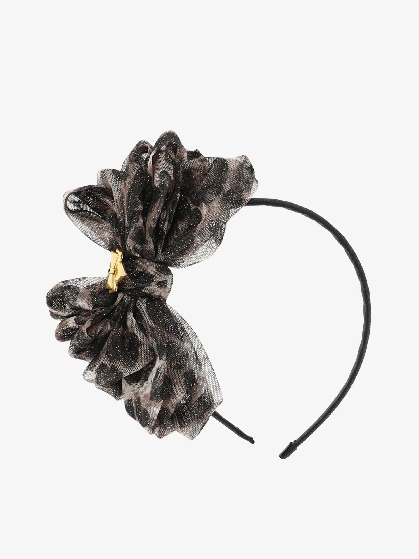Maak elke dag speciaal met deze opvallende haarband met luipaardprint voor meisjes. De opvallende strik van tule voegt een vleugje speelse glamour toe en is afgewerkt met ons kenmerkende gouden hartbedeltje voor een extra vleugje glitter. Perfect als accessoire bij feestjurken of om dagelijkse outfits een stoere twist te geven.