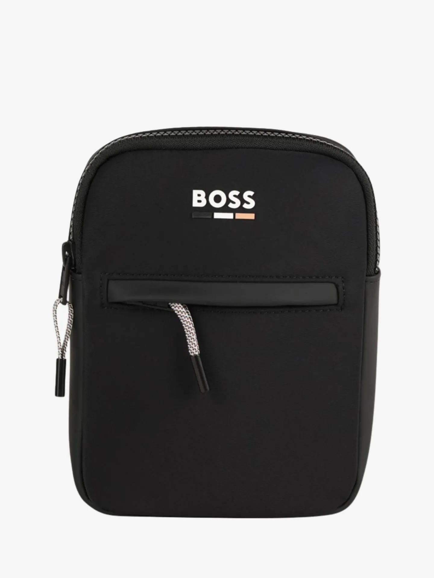 Deze BOSS messenger bag van met rubber bekleed textiel combineert stijl en functionaliteit. Het driekleurige logo op de voorkant en de verstelbare band met driekleurige strepen zorgen voor een dynamische touch. De gewatteerde open mesh achterkant zorgt voor optimaal comfort, terwijl de ritssluiting gemakkelijke en veilige toegang tot je benodigdheden biedt.