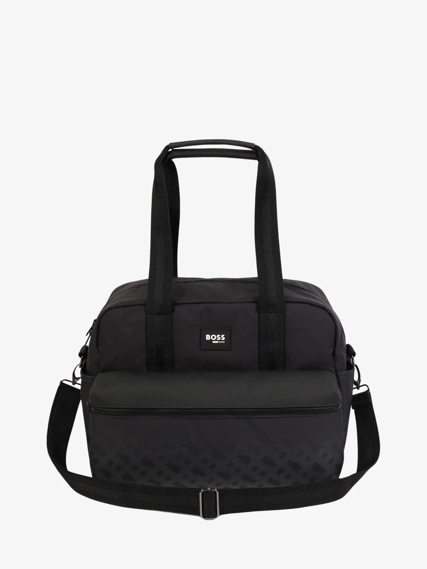 Deze luiertas met print van BOSS wordt geleverd met een afneembare riem, een aankleedkussen en twee kinderwagenklemmen. De bodem is verstevigd met klinknagels en de voering is wasbaar. Afmetingen: 39 x 29 x 16,5 cm