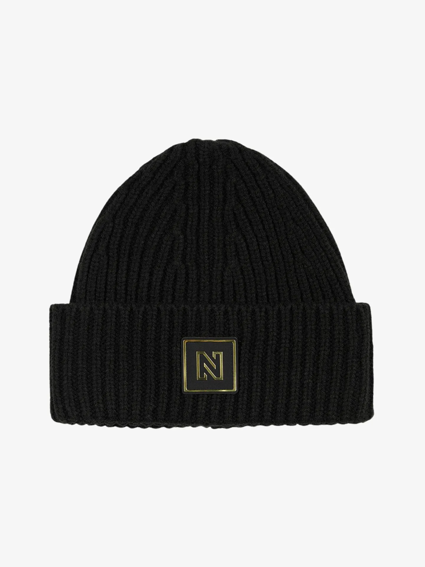 Gebreide beanie van wolmix met een omgeslagen rand, een logo patch en een ribstructuur. De Nikkie Nashville Muts combineer je met de winterjassen van Nikkie. Totale lengte: 21,5x22cm