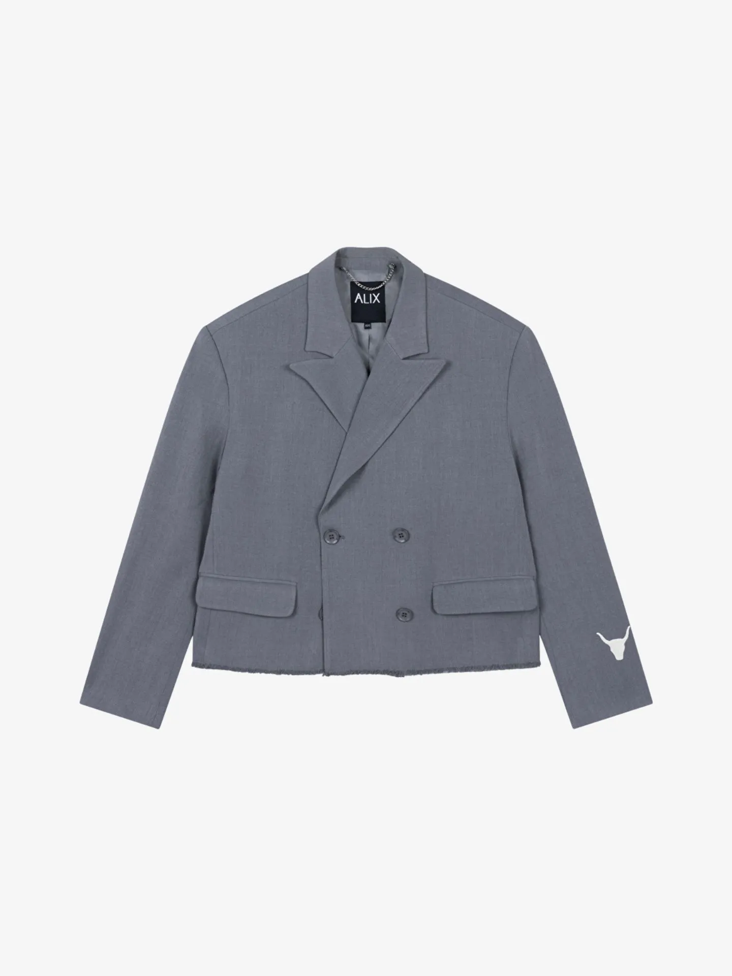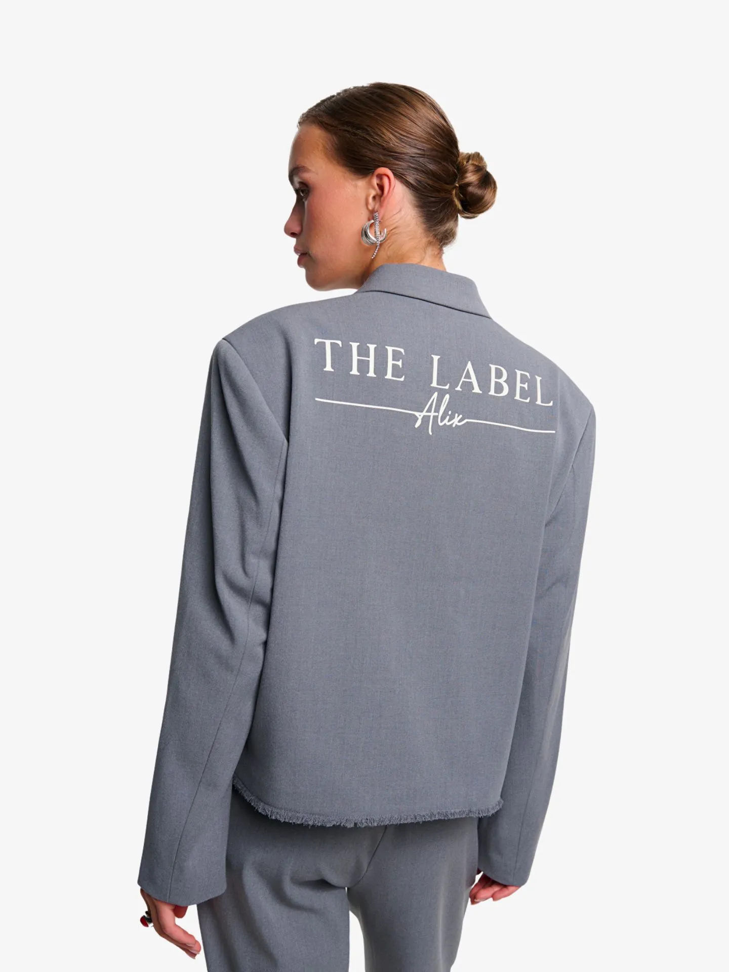 Oversized blazer van een vloeiende kostuumstof. Ontworpen met een ruwe randlook aan de onderzoom. Met een ALIX THE LABEL print op de rug en een stier borduursel op de mouw. Combineer met mijn bijpassende broek voor een complete look.