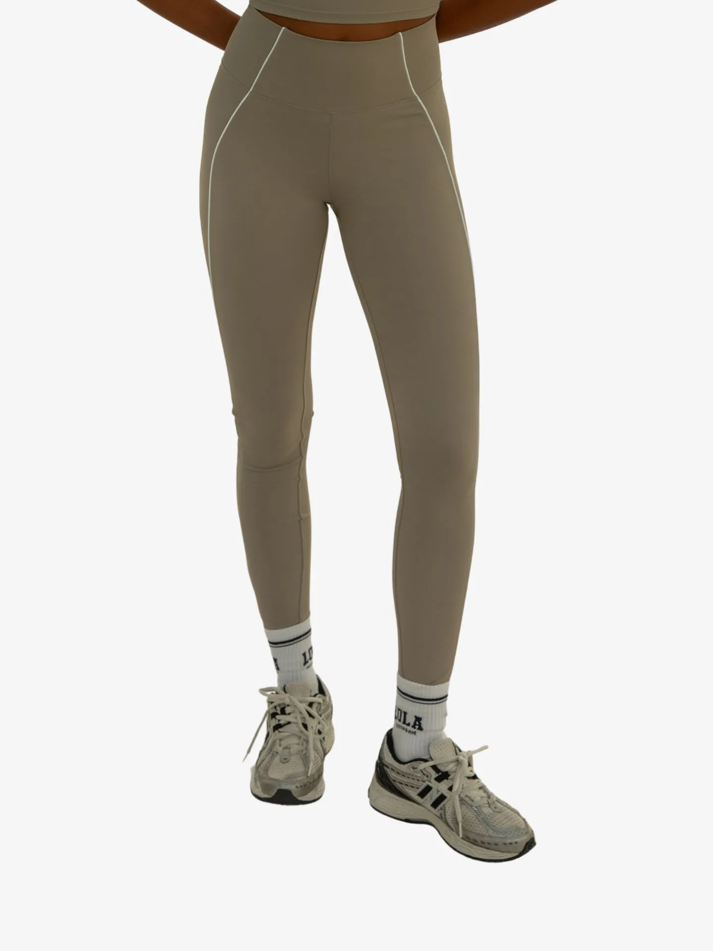 Ontdek de Alma-legging. Deze legging is ontworpen om met je mee te bewegen en heeft een strakke pasvorm die aanvoelt als een tweede huid (second-skin). De contrasterende witte details voegen een stoere, sportieve edge toe, terwijl de hoge taille een flatterende en ondersteunende pasvorm biedt. De Alma-legging is gemaakt van lichtgewicht, ademende stof en garandeert flexibiliteit en comfort de hele dag door, of je nu intensief sport of hem draagt als alledaagse kleding. Verrijk je sportgarderobe met deze veelzijdige essential die functionaliteit en mode perfect in balans brengt.