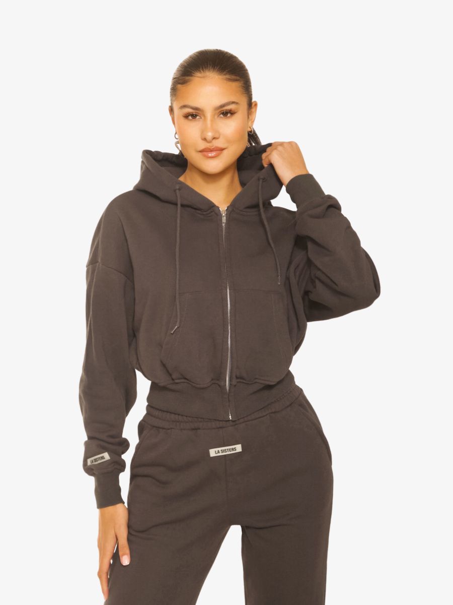 LA Sisters Dames Vest Essential Cropped Hoodie Donkergrijs