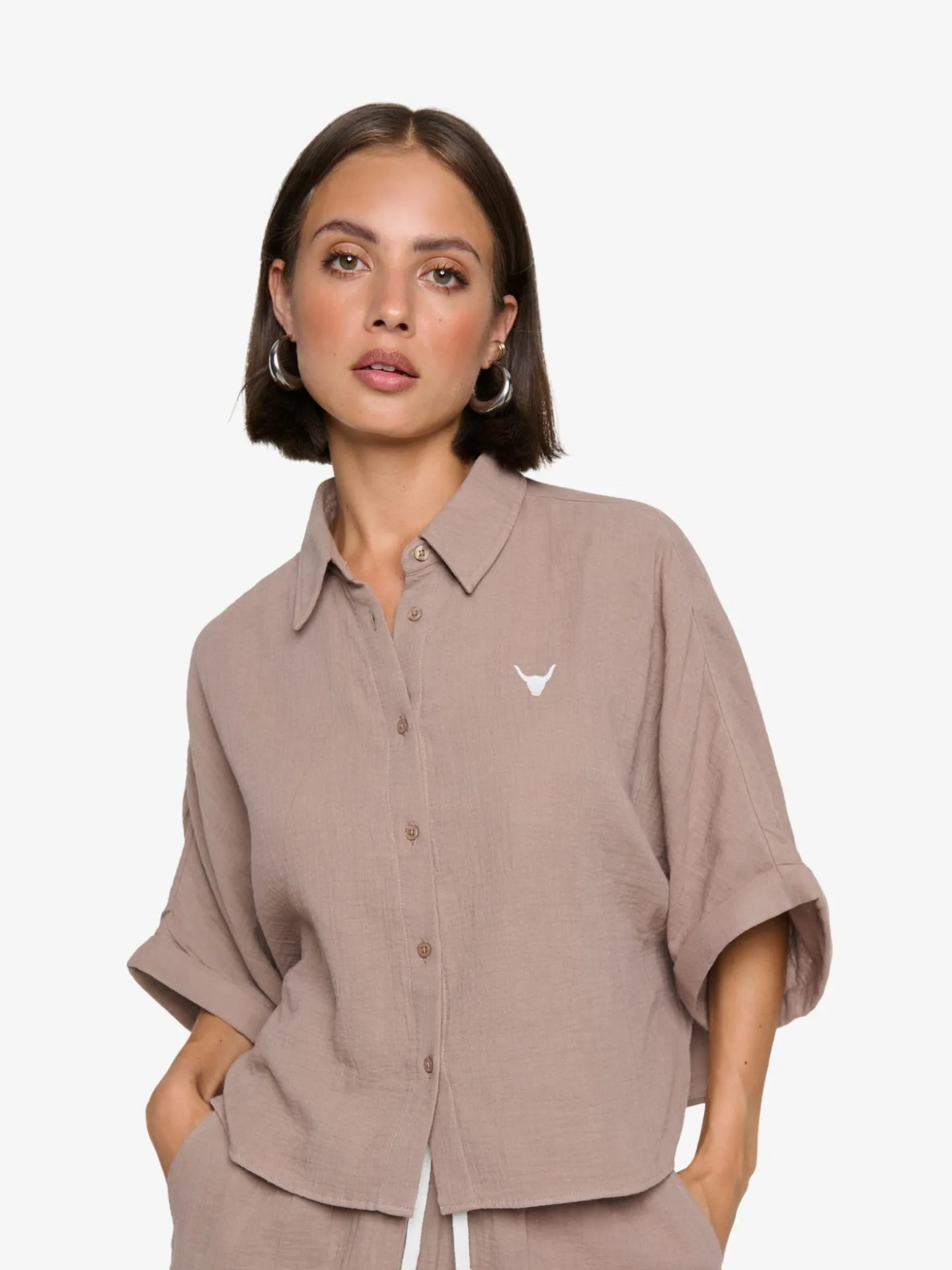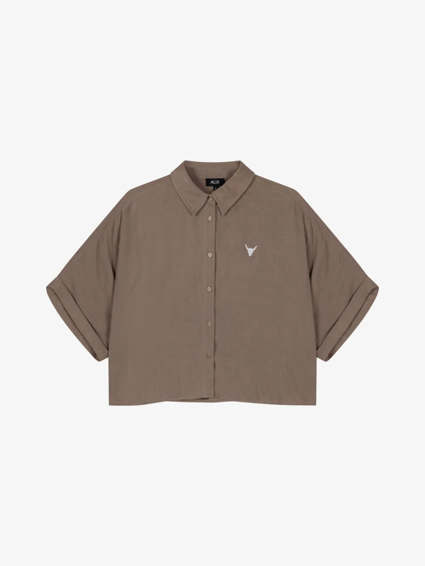 Alix The Label Dames Blouse Oversized Crinkle Taupe