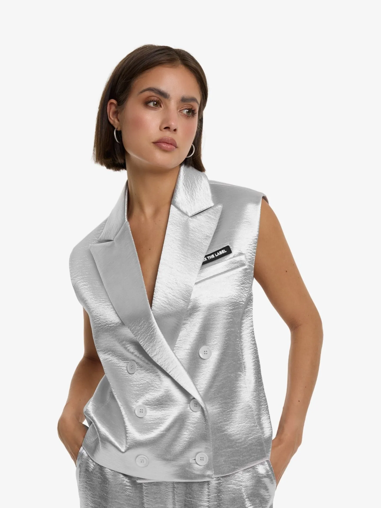 Alix The Label Dames Gilet Shiny Zilver