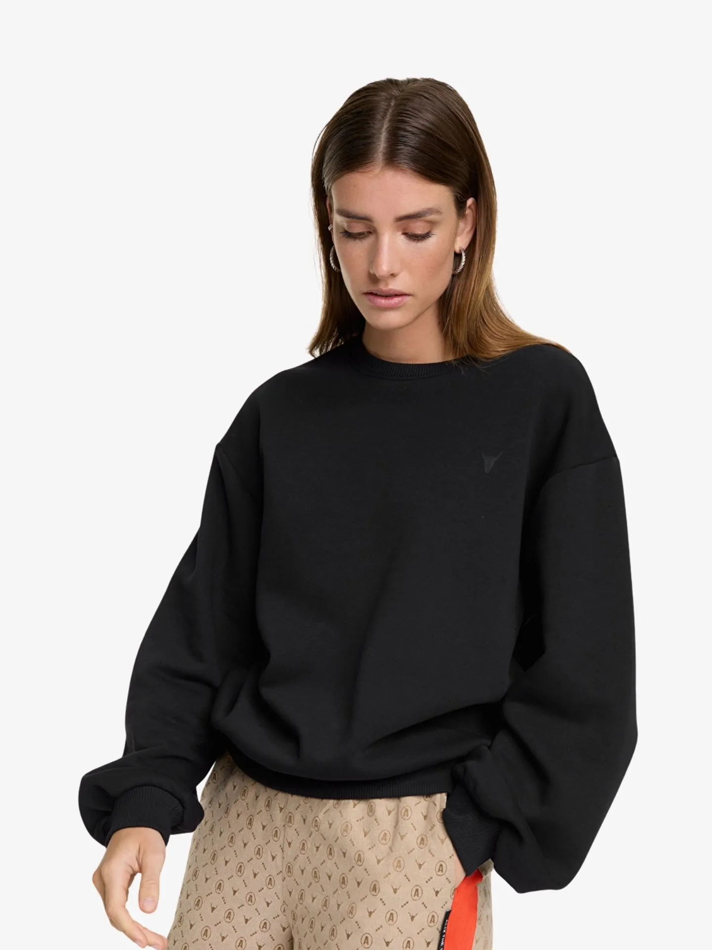 Zwarte sweater van het Nederlandse merk Alix The Label. De sweater heeft een ronde hals, lange mouwen, elastische boorden en een opdruk aan de achterzijde.