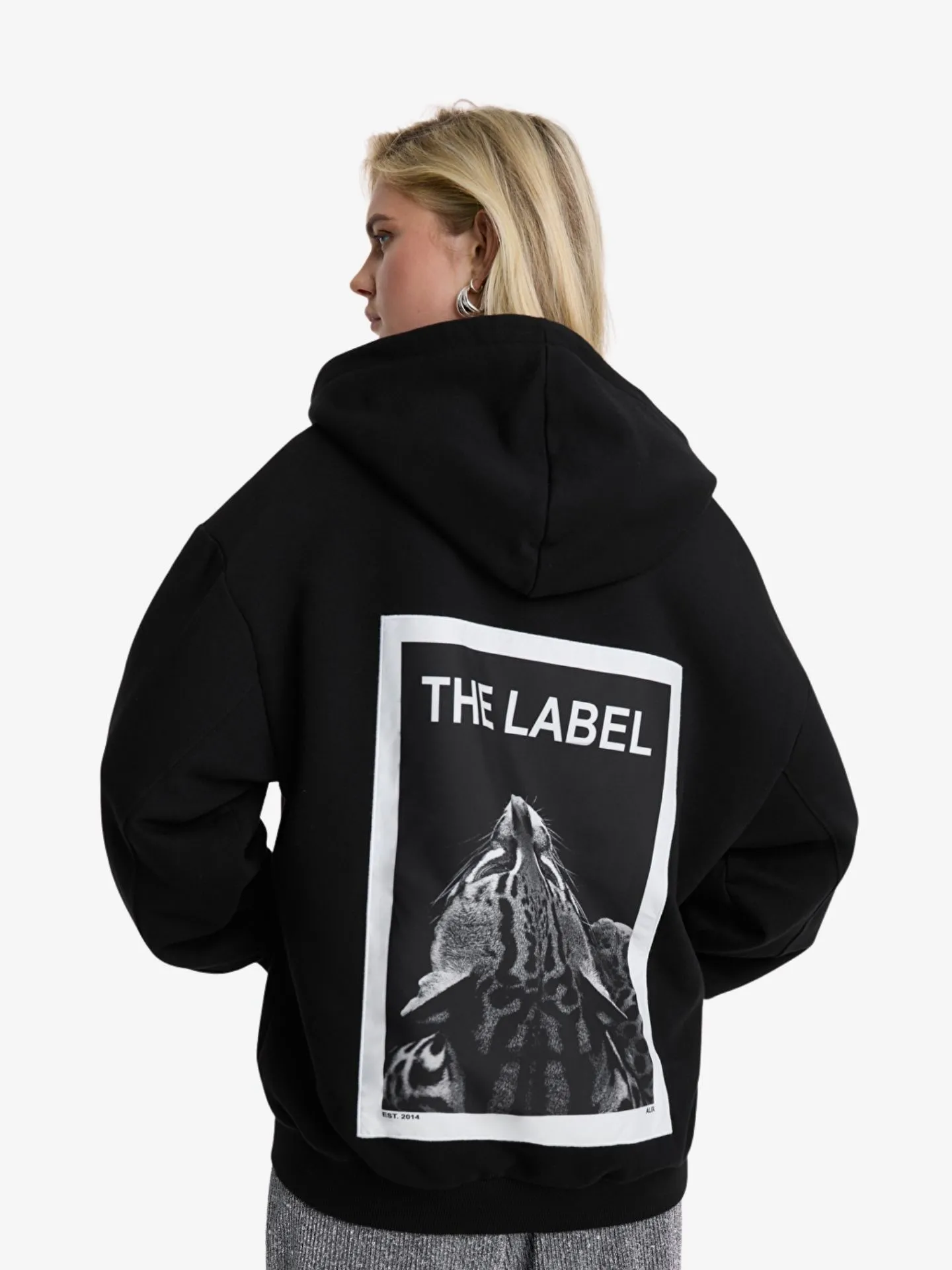 Zwart vest met capuchon van het Nedrlandse merk Alix The Label. Ontworpen met een capuchon voor een comfortabele look. Met een ALIX-artwork op de achterkant.