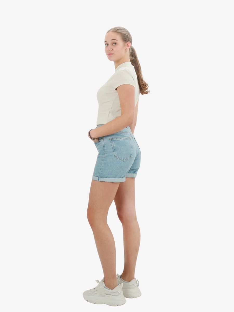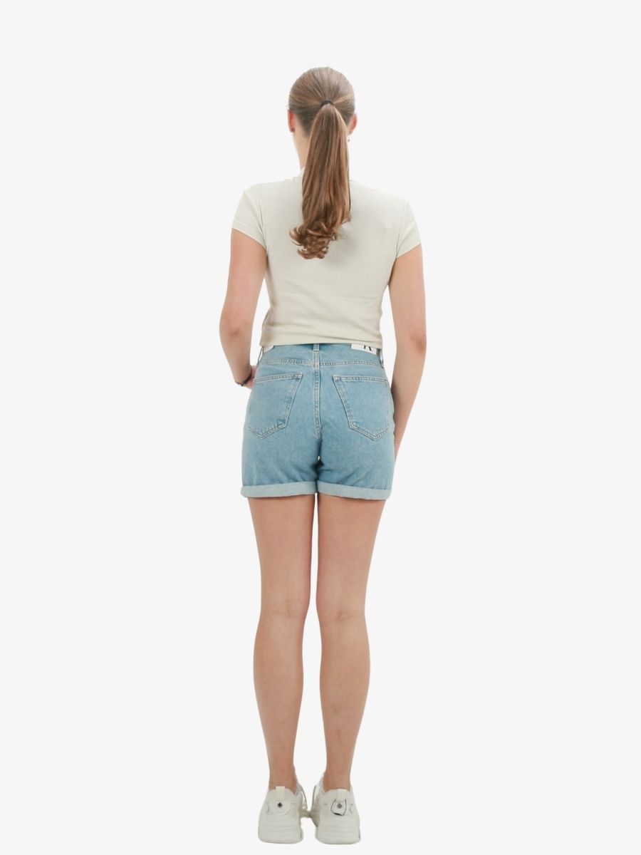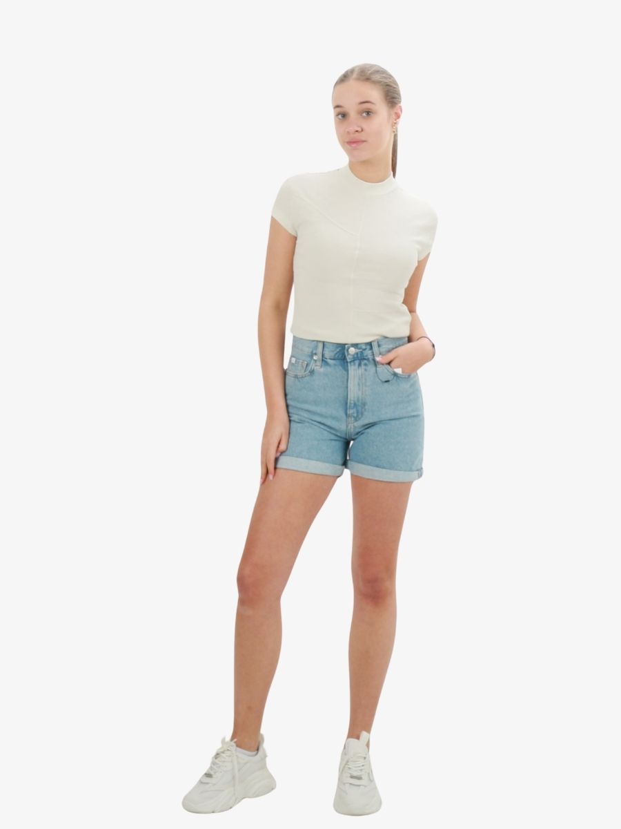 Korte rib top van het Amerikaanse merk Calvin Klein. De top heeft een hoge ronde hals, korte mouwen en een klein logo aan de linkeronderzijde. Combineer samen met een spijkershortje.