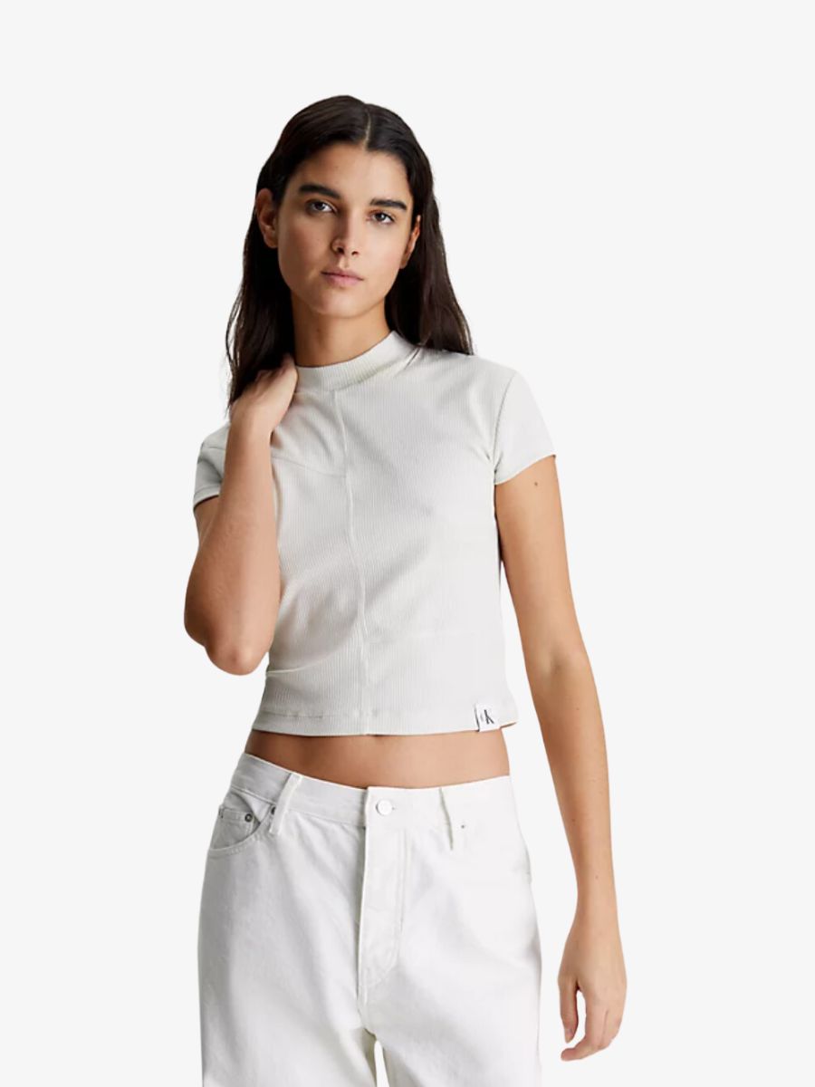 Calvin Klein Dames Shirt Seaming Rib Slim Tee Icicle