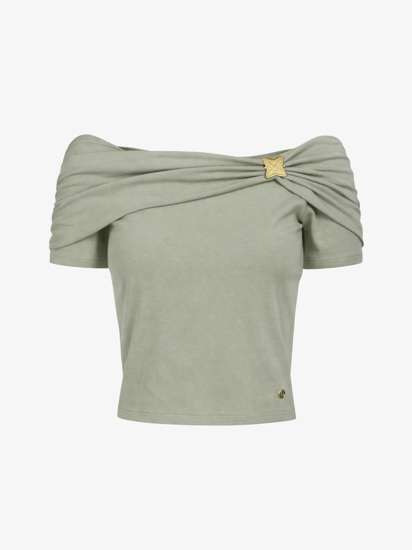 Guess Dames Top Brigitte Off Shoulder Sage Leaf
