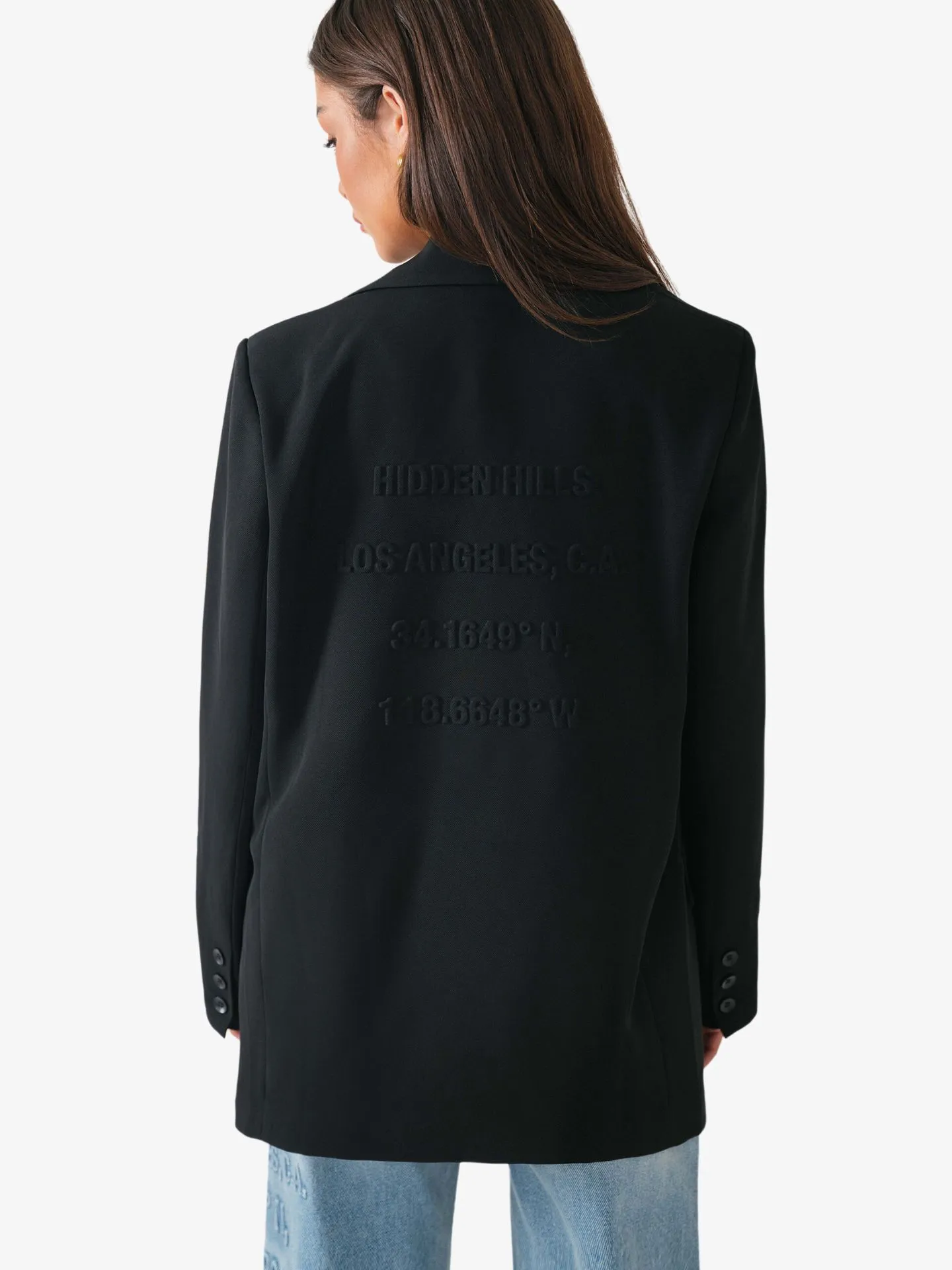 Een veelzijdige, oversized blazer die perfect is voor dagelijks gebruik en voor speciale avonden. Het embossed design en onze signature royal blue label zorgen voor een eye catching outfit.