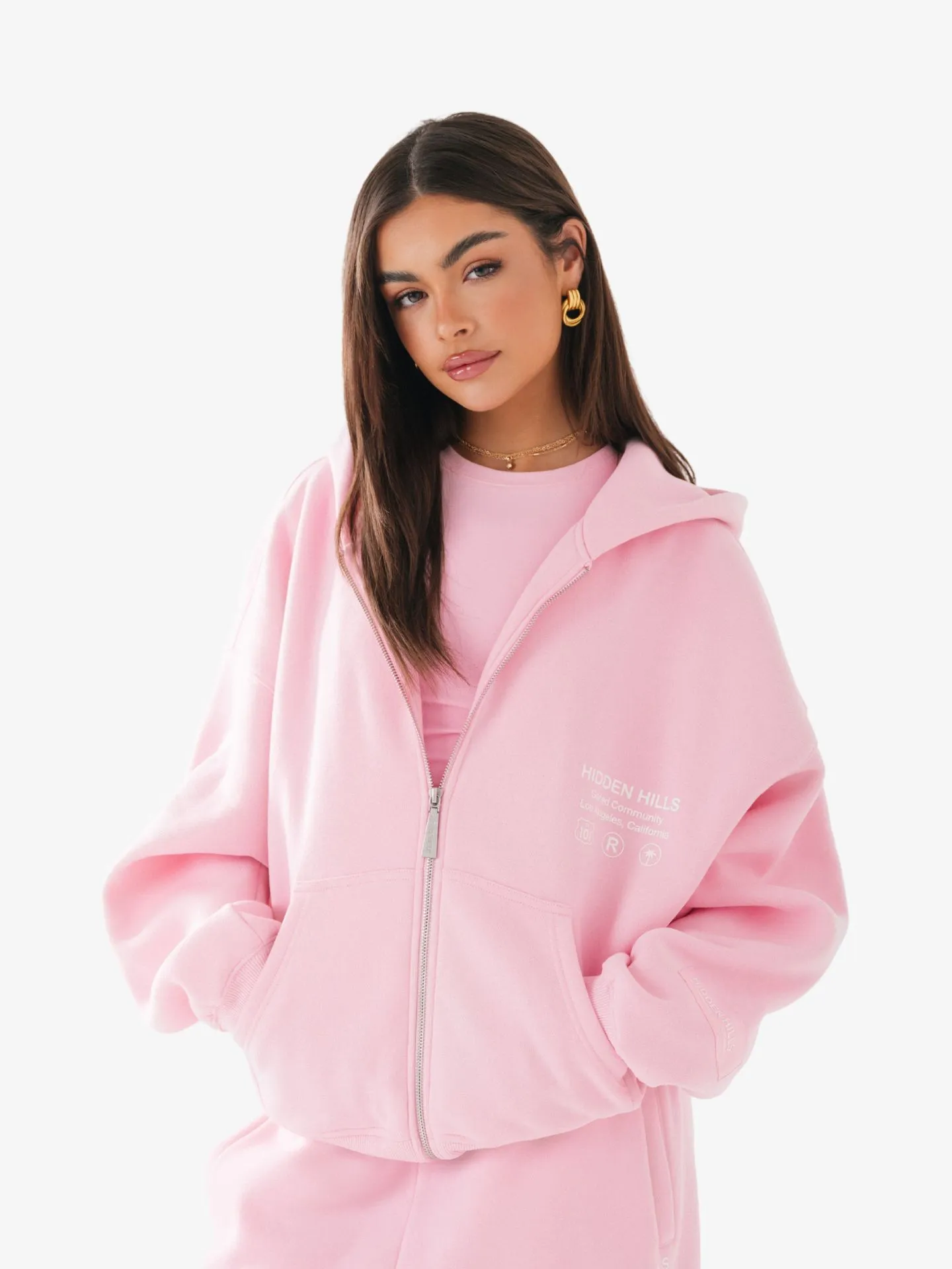 De Hidden Hills Label Vest in Light Pink heeft een relaxte oversized pasvorm en een grote capuchon die goed blijft zitten. Gemaakt van een kreukvrije katoen-polyester mix met extra geborsteld fleece voor een ultiem zacht en warm gevoel. Het vest heeft printed artwork en het label op de mouw.