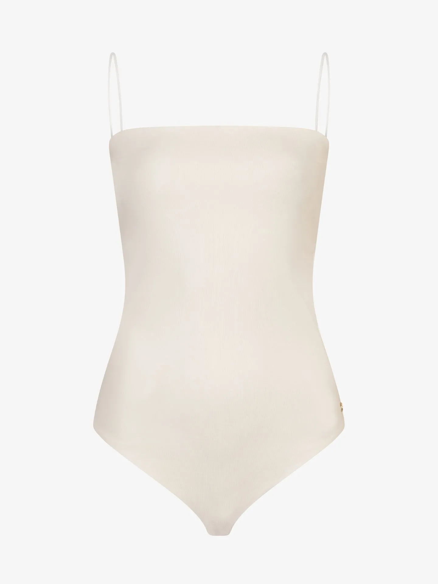 De JOSH V Yve dames body in de kleur Creme White heeft een slim fit pasvorm. De body is gemaakt van gerecycled polyester, stretch en katoen dat ingekocht is via het Better Cotton Initiative. Het subtiele, geborduurde JOSH V-logo aan de achterzijde zorgt voor een verfijnde finishing touch. Door middel van een drukknoopsluiting sluit de body. De body met dunne bandjes en rechte halslijn is perfect te combineren met een damespak of jeans.