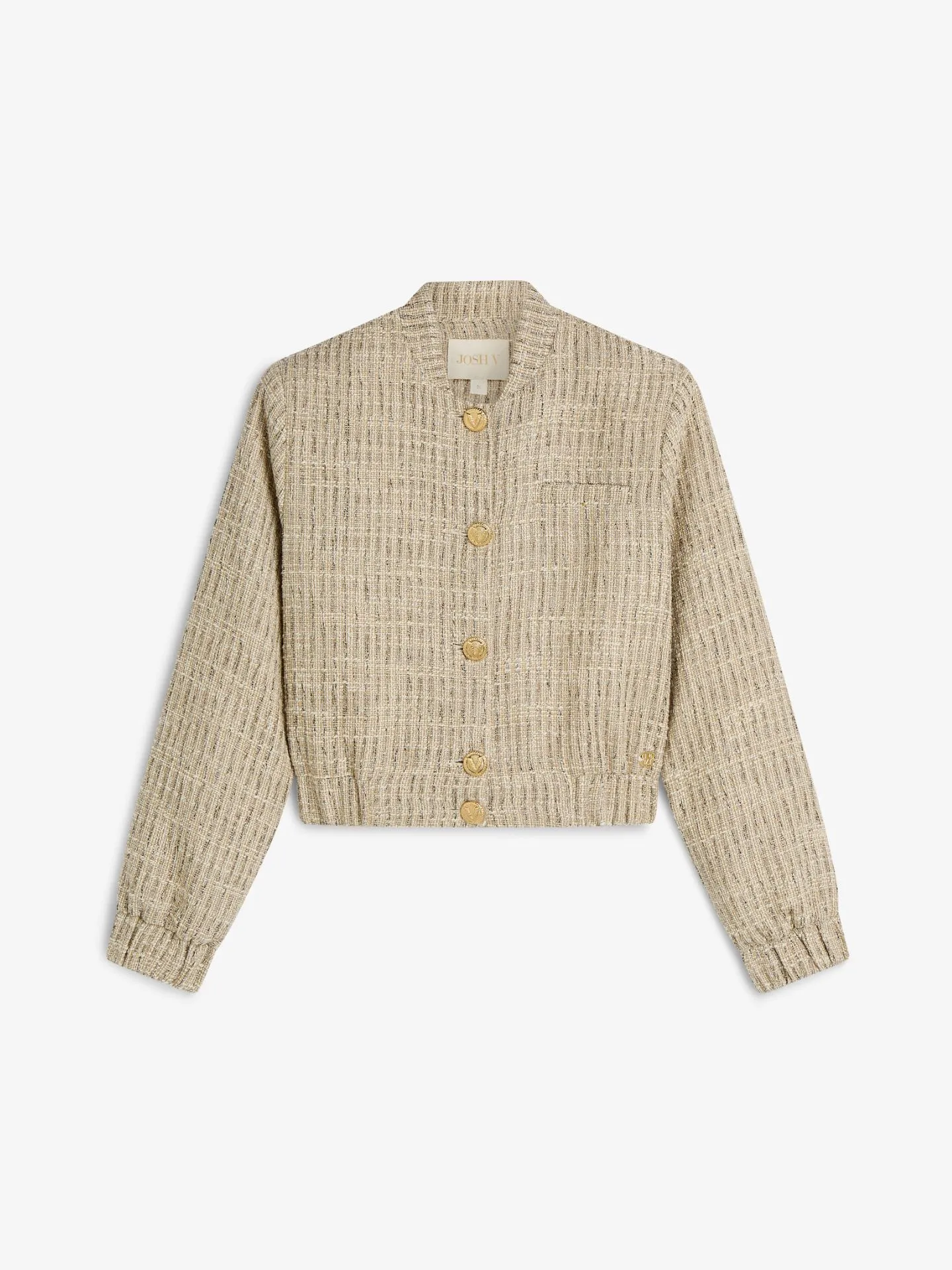 De JOSH V Junia dames bomber jacket in de kleur Light Ecru is een veelzijdige toevoeging aan elke garderobe. Het regular fit jasje is gemaakt van een gemeleerde bouclekwaliteit met gerecycled polyester. Daarnaast is het bomber jacket verrijkt met steekzakken en elastische boorden bij de mouwen. Door middel van een knoopsluiting sluit het boucle jasje. Ga voor de complete set en combineer het jasje met de bijpassende Etta rok.