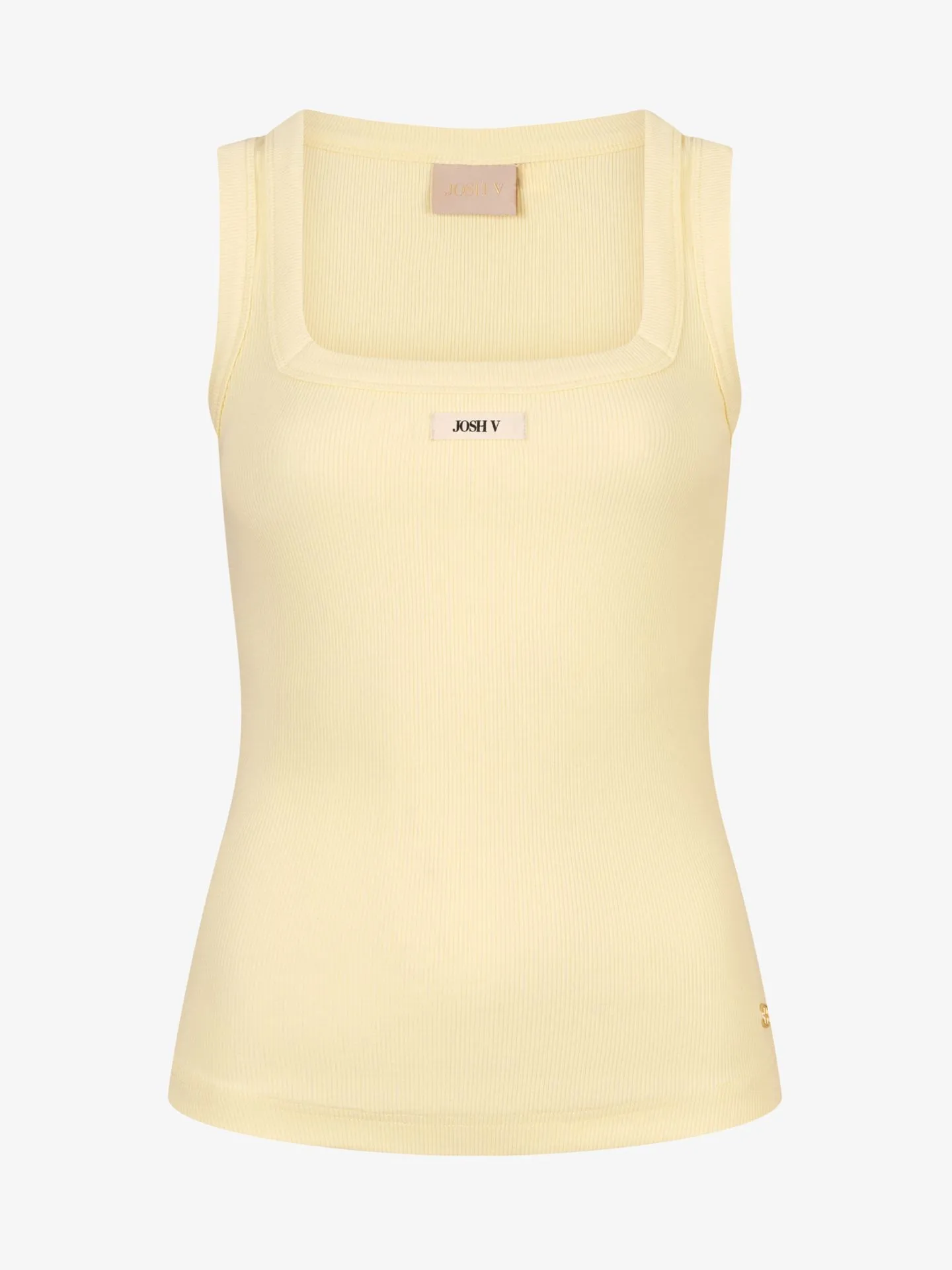 De JOSH V Dieda top in de kleur Butter Yellow is een slim fit top met een vierkante halslijn. Het topje is vervaardigd van ribstof met katoen, ingekocht via het Better Cotton Initiative (BCI), en stretch. Het subtiele logodetail aan de voorzijde geeft het topje een verfijnde touch. Stylingtip: combineer de top met een wide-leg pantalon en accessoires uit de Summer 26 collectie voor een frisse, stijlvolle look.