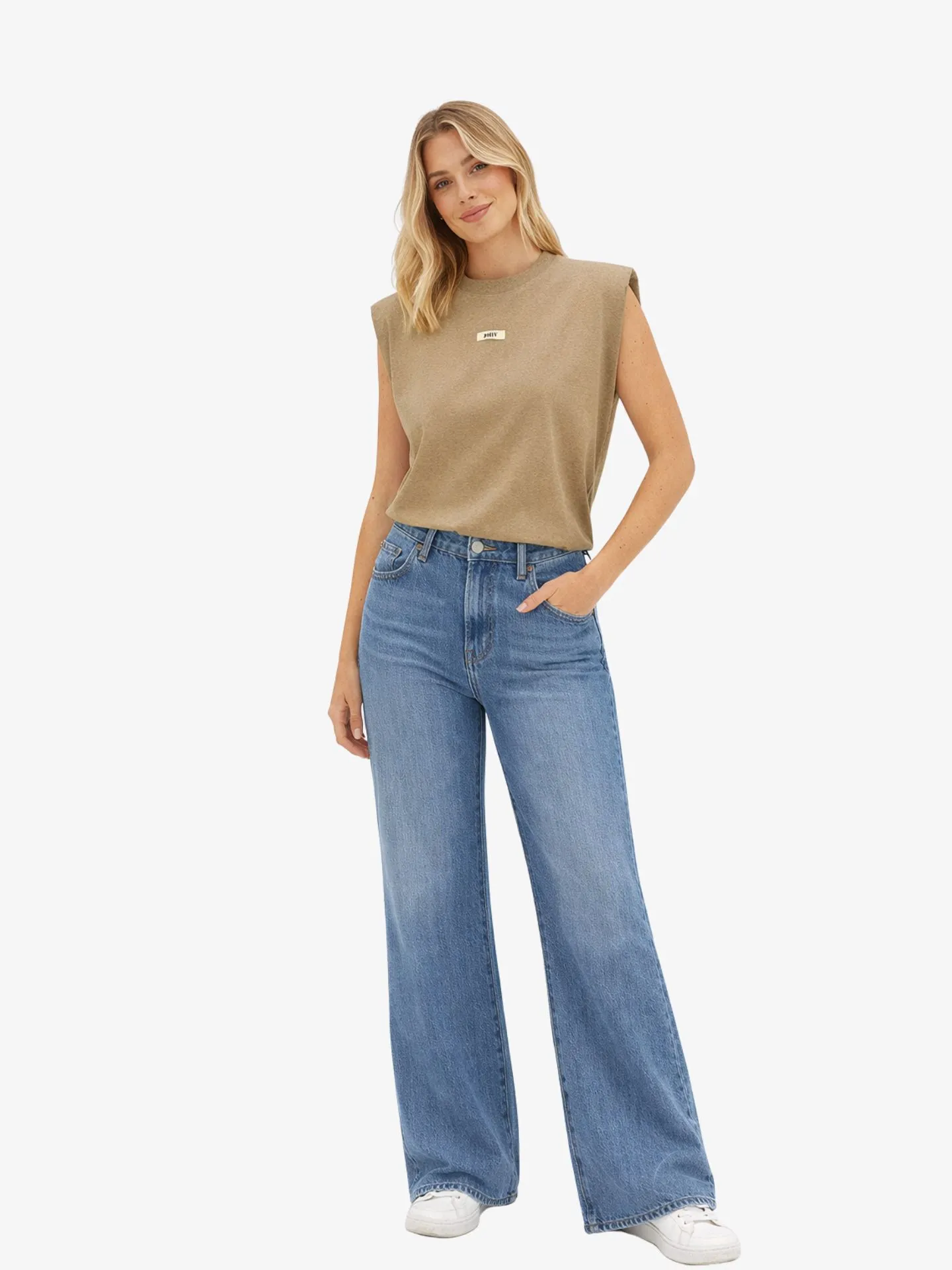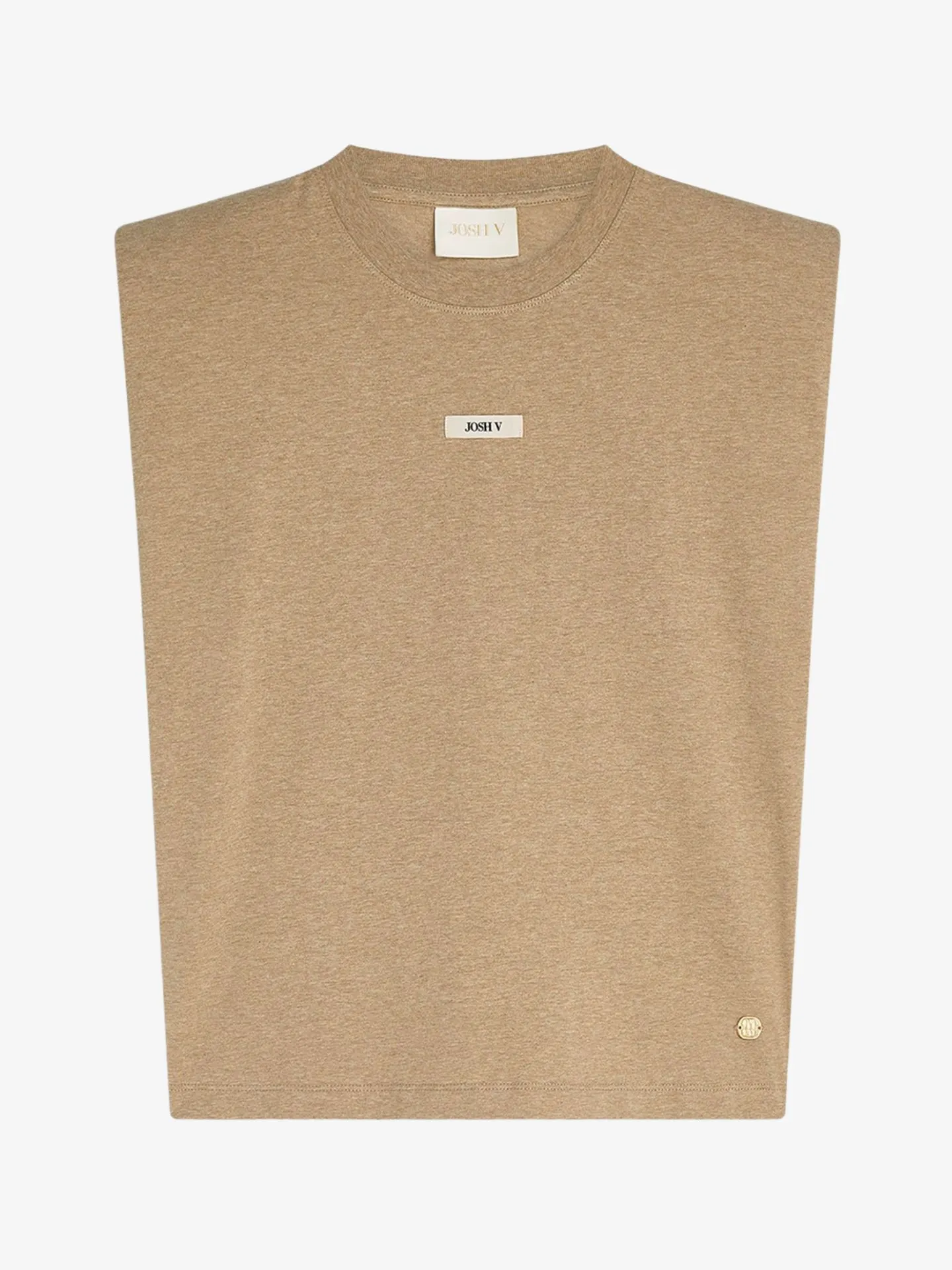 Het JOSH V Sue dames T-shirt in de kleur Light Khaki is gemaakt van katoen met stretch, ingekocht via het Better Cotton Initiative. Het mouwloze design, de ronde hals en de subtiele schoudervullingen zorgen voor een moderne uitstraling. Draag het T-shirt casual met een jeans of combineer met een blazer en pantalon voor een geklede look.