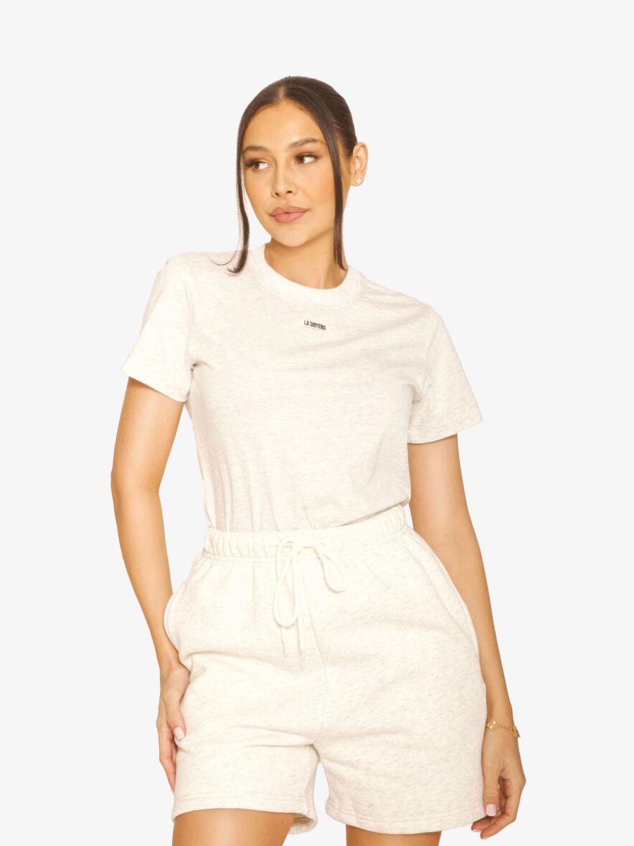 De LA Sisters Essential Shirt in Grijs heeft een boxy cropped pasvorm. Hij valt mooi op de broekrand. Combineer het shirt samen met de bijpassende LA Sisters short.