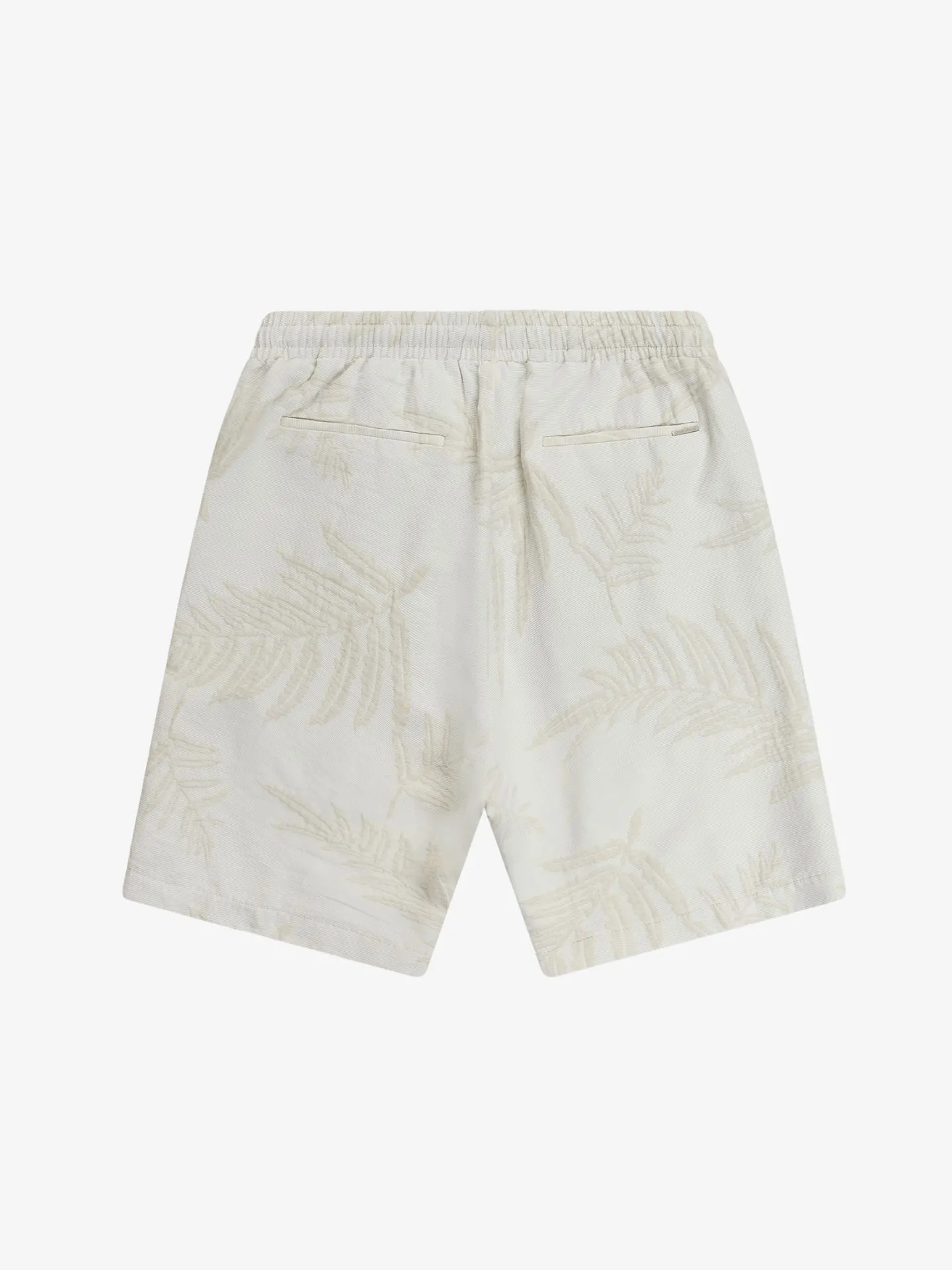 Regular fit shorts gemaakt van een lichtgrijze jacquard stof. Voorzien van een all-over palmbladeren dessin en een metalen logo-badge. Ontworpen met een elastische tailleband en trekkoord voor een comfortabele pasvorm. Combineer met een clean wit T-shirt en sneakers voor een relaxte zomerse look.