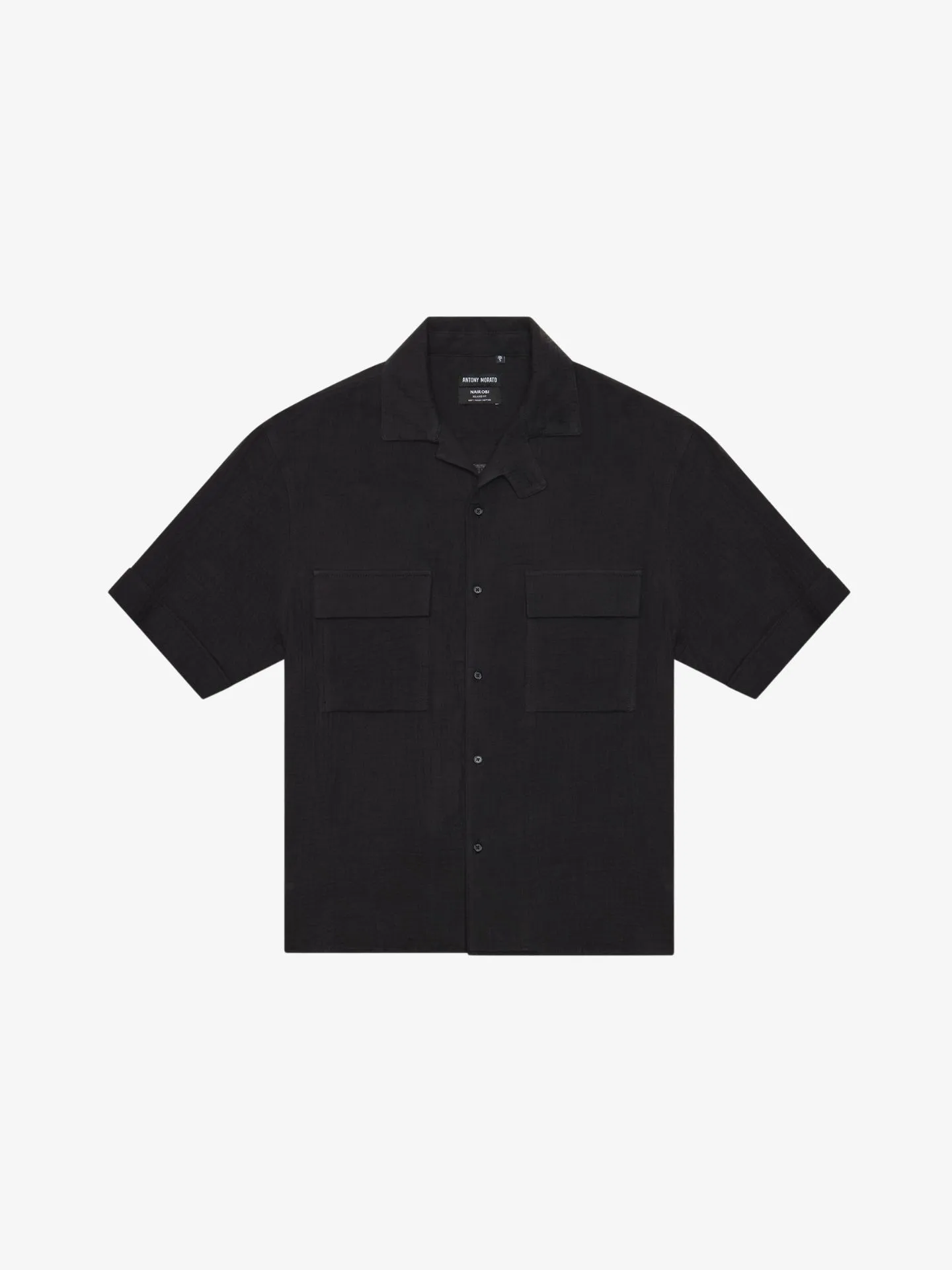 De Antony Morato Nairobi Blouse in de kleur Zwart heeft een relaxed pasvorm en crinckle kwaliteit. De blouse heeft een knoopsluiting en borstzakjes. Combineer met de bijpassende short.