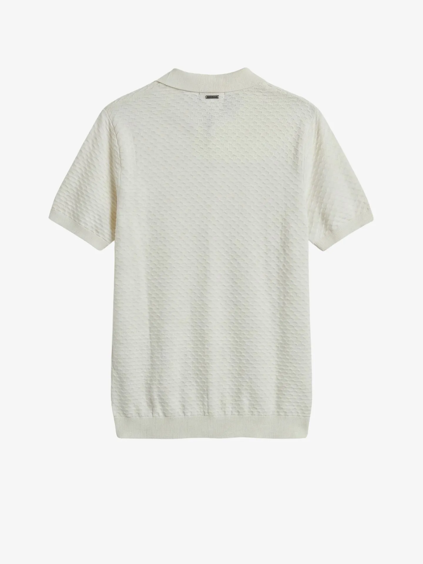 Regular fit poloshirt gemaakt van een zachte structuurgebreide stof. Ontworpen met een klassieke open polokraag en korte mouwen. Voorzien van een subtiele horizontale structuur voor een verfijnde look. Combineer met mijn casual chino en loafers voor een stijlvolle zomerse outfit.