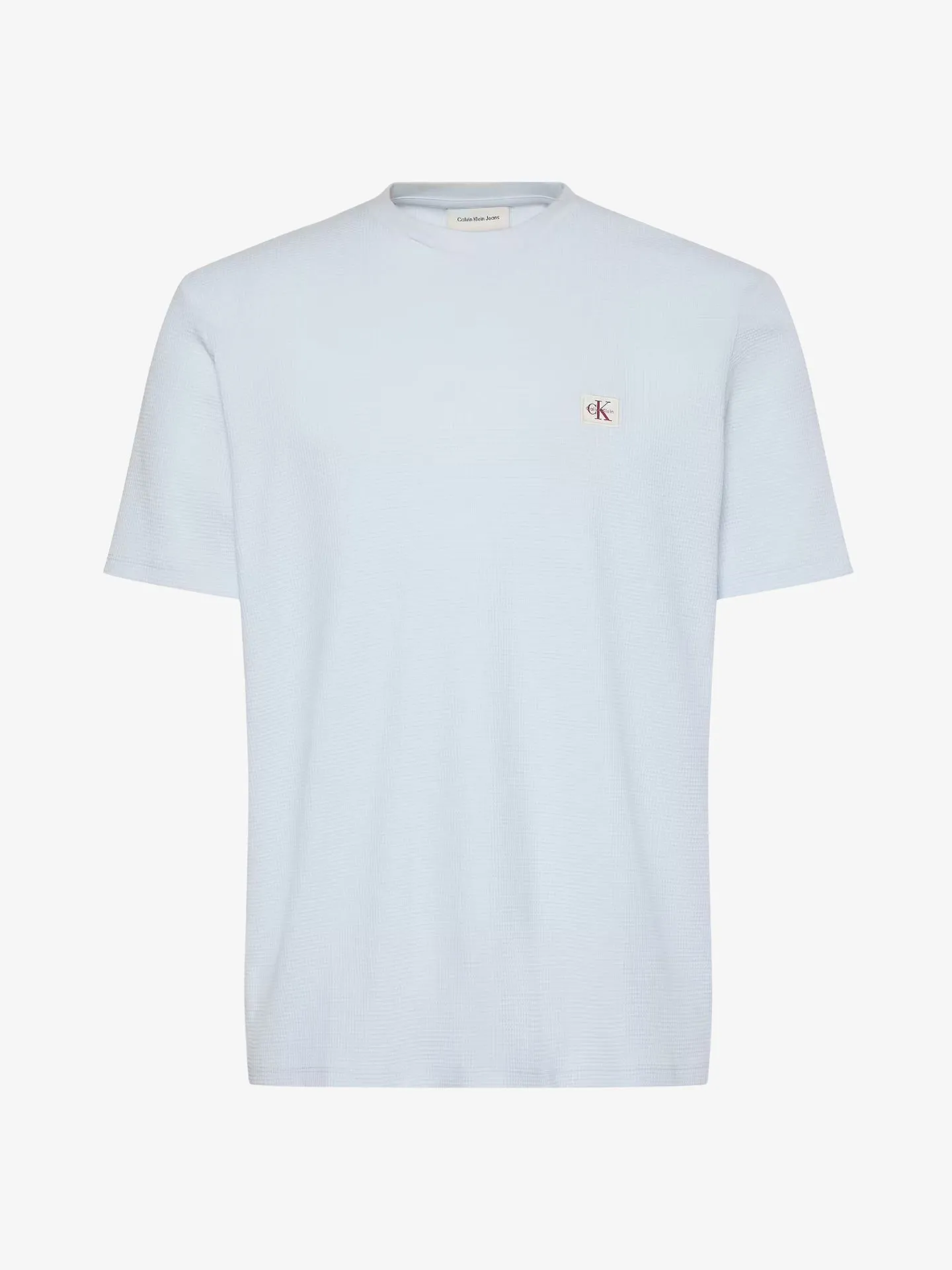 Wit T-shirt met wafel textuur van het Amerikaanse merk Calvin Klein. Het T-shirt in de kleur Plein Air heeft een ronde hals, korte mouwen en een logo aan de linker voorzijde van het shirt.