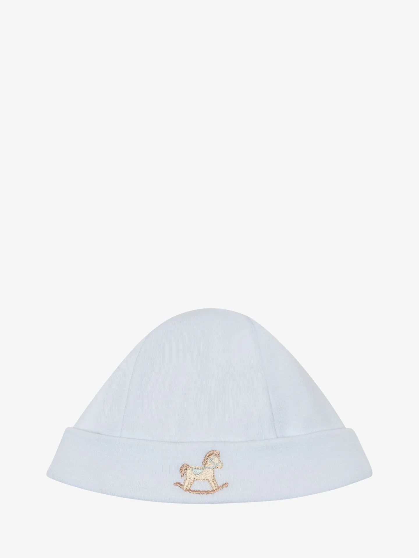 Katoenen mutsje van het merk Baby Gi. Het zachte klassieke mutsje heeft een geborduurd Hobbelpaard logo aan de voorzijde. Combineer de muts met het bijpassende boxpakje voor een complete look.