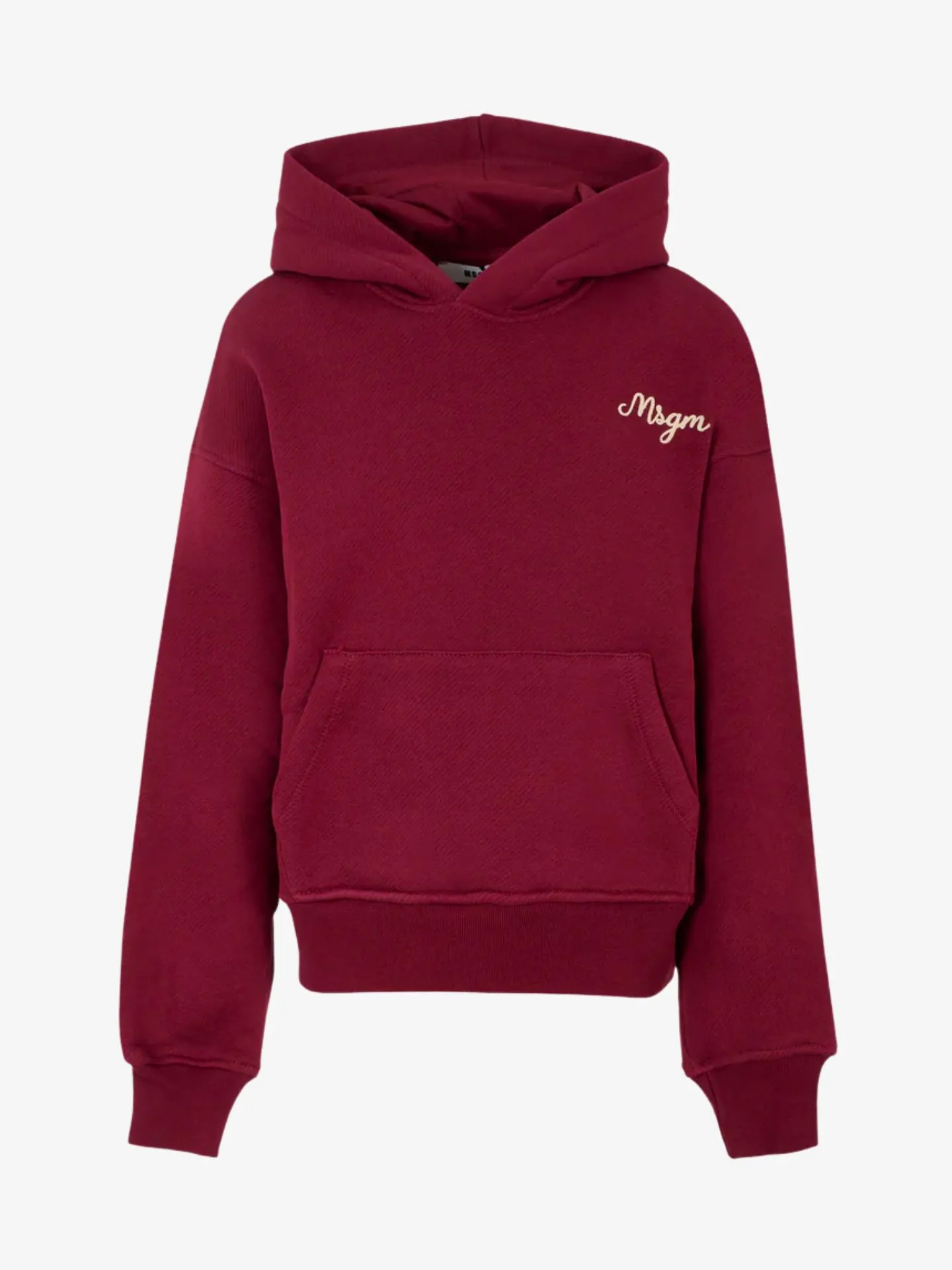 Hoodie in de kleur rood van het Italiaanse merk MSGM. De hoodie heeft een buidelzak aan de voorzijde, elastische boorden en het merklogo aan de voor- en achterzijde.