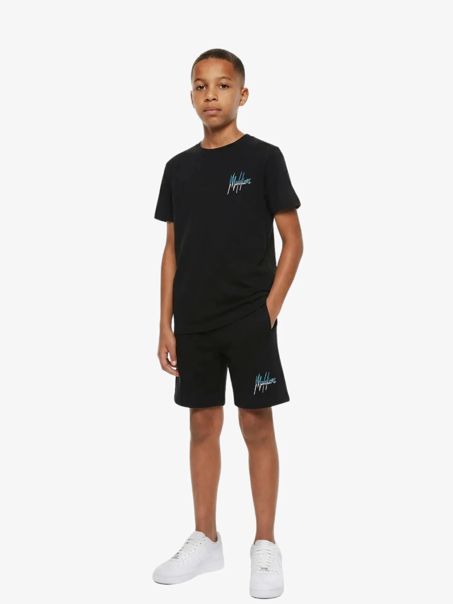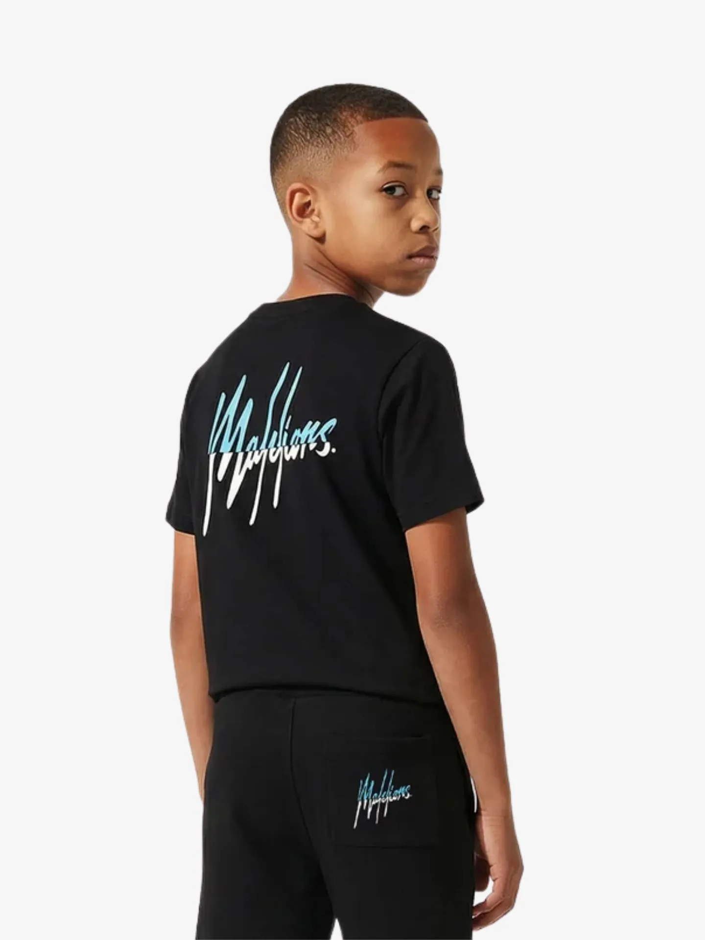 Malelions Junior Jongens T-shirt Split Zwart Blauw