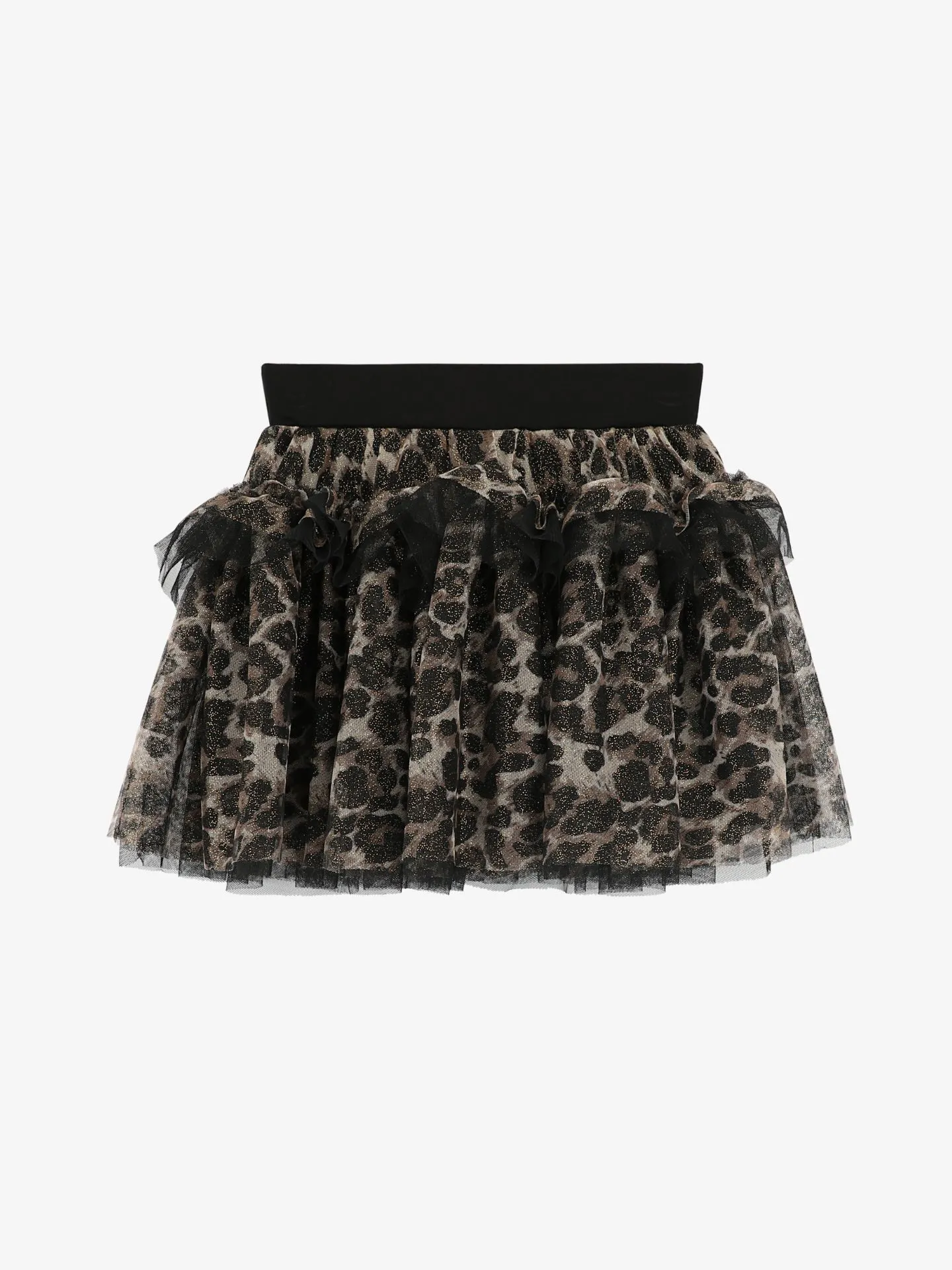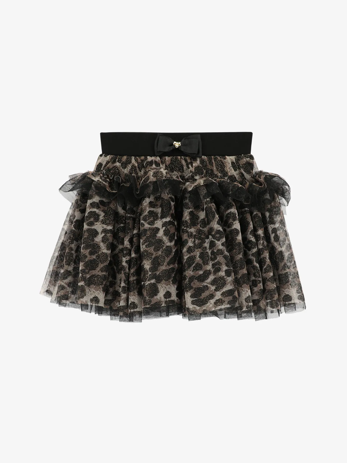 Leuke tule rok met luipaardprint voor meisjes. Deze volumineuze, gelaagde feestrok met tule heeft een zachte elastische taille. Afgewerkt met een grote grosgrain strik en de kenmerkende gouden hartjesstud. Volledig gevoerd met een katoenmix. Deze rok valt tot op de knie.