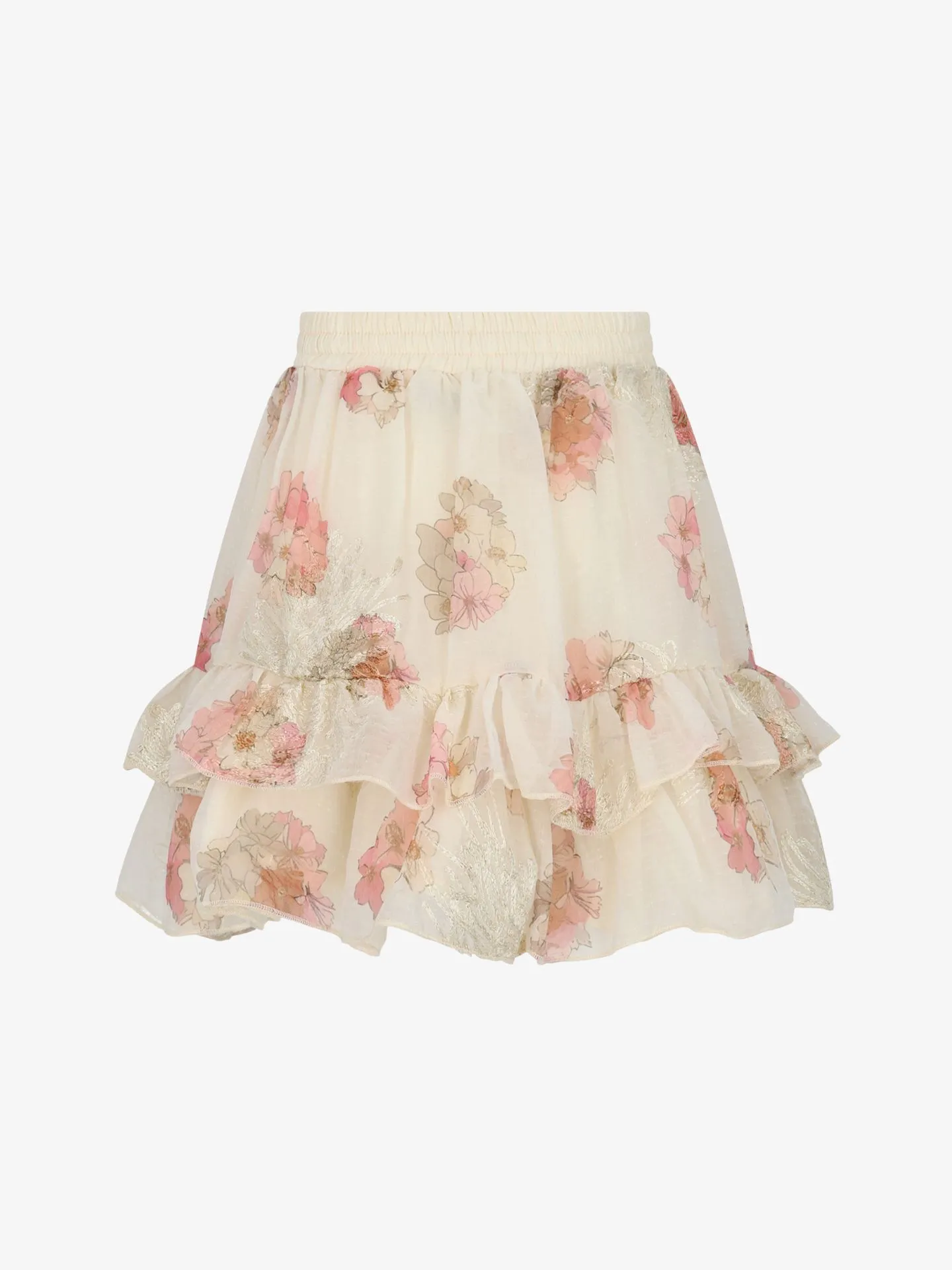 Laat je dochter stralen als een ware prinses in deze prachtige off white rok van Le Chic. De rok is vervaardigd uit een luxe stof met een schitterende bloemenprint en subtiel gouden garen, wat zorgt voor een chique en feestelijke uitstraling. Perfect voor communies, bruiloften of elk ander speciaal evenement waarbij uw meisje zich elegant en speciaal wil voelen. Een must-have voor de garderobe van uw kind, die kwaliteit en exclusieve elegantie uitstraalt. Deze rok is ontworpen om het gevoel van een sprookjesachtige dag te creeren. - Ideaal voor communies en bruiloften - Luxe stof met gouden garen voor een feestelijke glans - Verkrijgbaar in maten 98 t/m 158/164 - Combineert moeiteloos met de rest van de Le Chic collectie - Stijlvol en elegant design