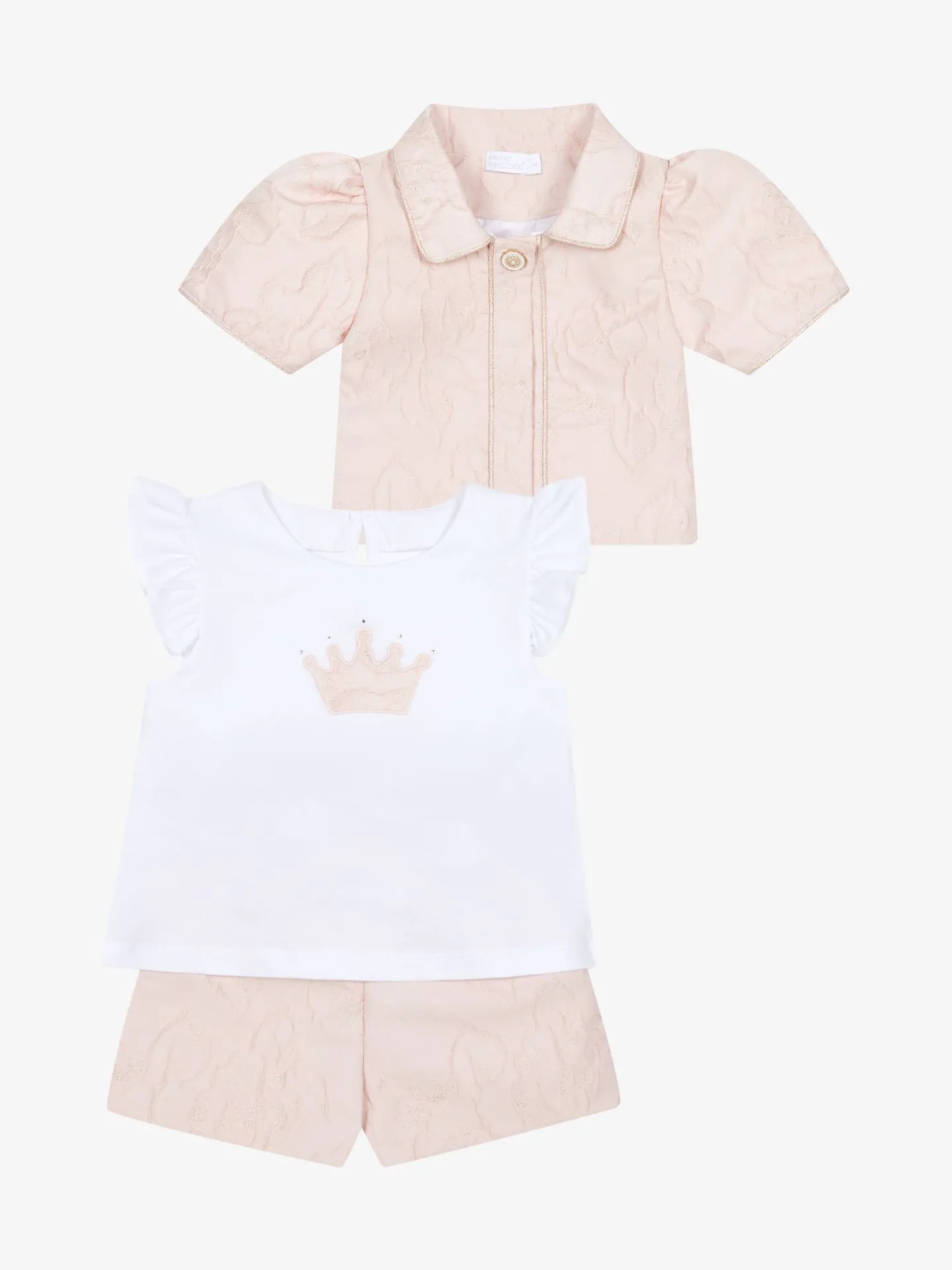 3-delige set van het Portugese merk Deolinda. De Linda set bestaat uit een blouse, T-shirt en short. Combineer de set met de bijpassende tas en de haarband voor een complete look.