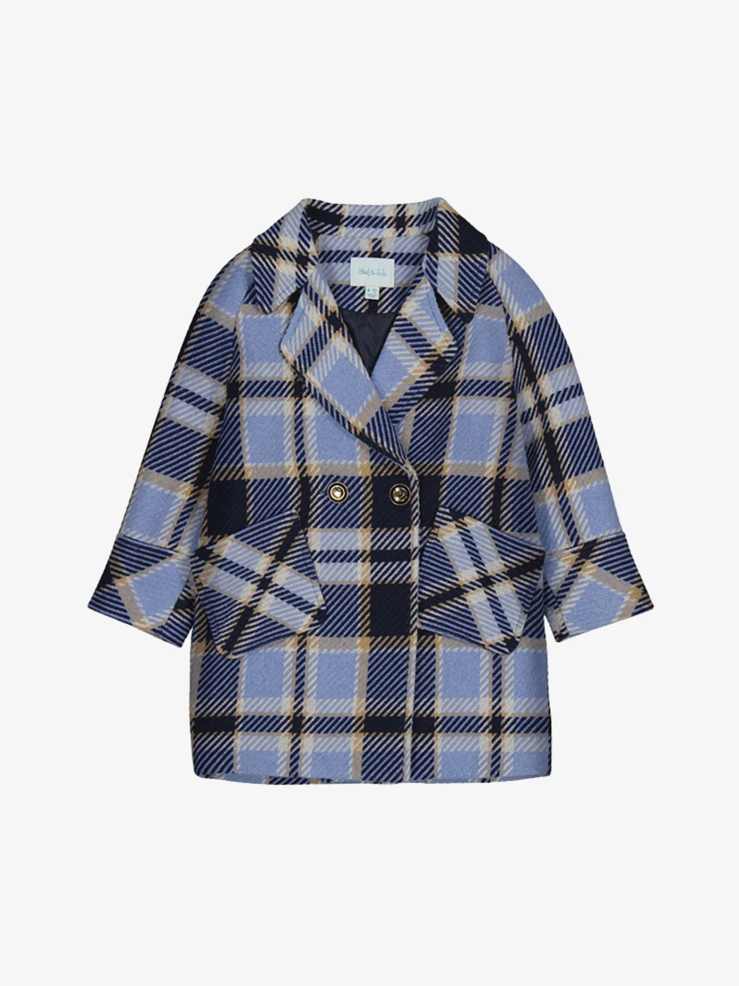 Geruite winterjas van het Spaanse merk Abel&Lula. De geruite jas in de kleur blauw heeft een knoopsluiting, lange mouwen en opgestikte zakken.