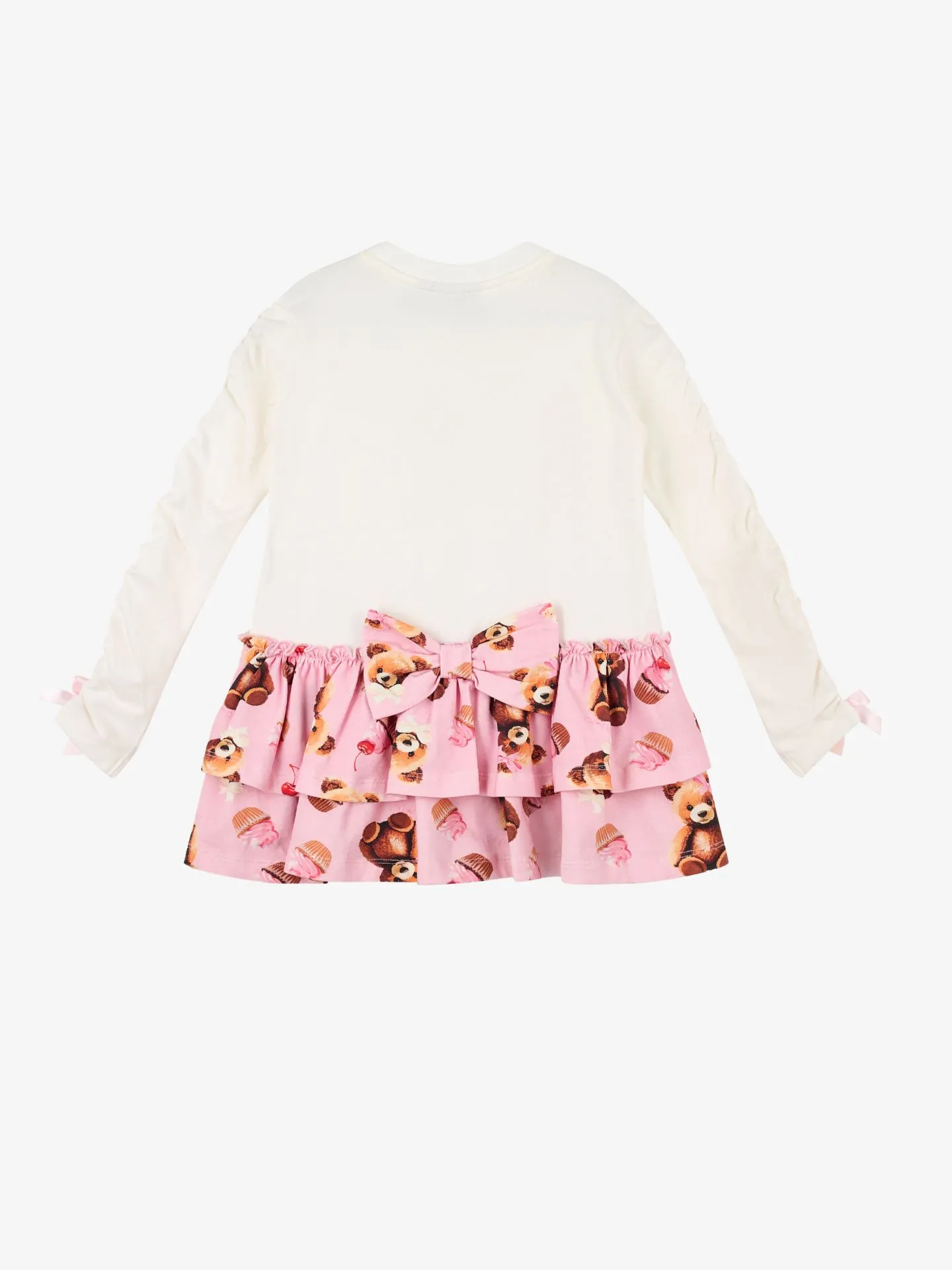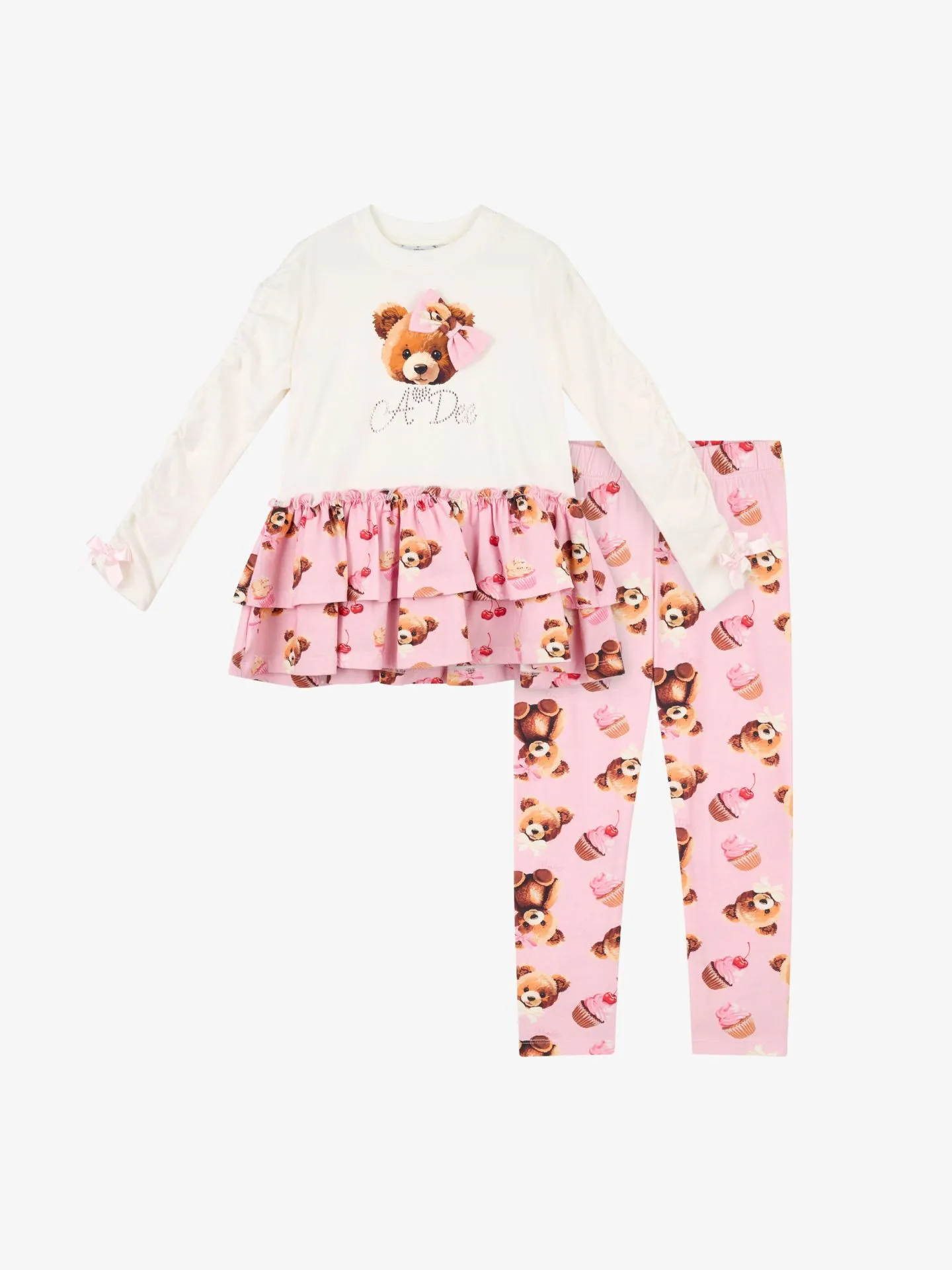 De Madison leggingset is bere-schattig! Met een Teddy Bear Bakery-artwork op de voorkant, een zoom met dubbele berenprint en een strikdetail aan de achterkant en gerimpelde mouwen met een strikdetail aan de manchetten. Combineer met de bijpassende comfortabele legging met teddybeerprint.