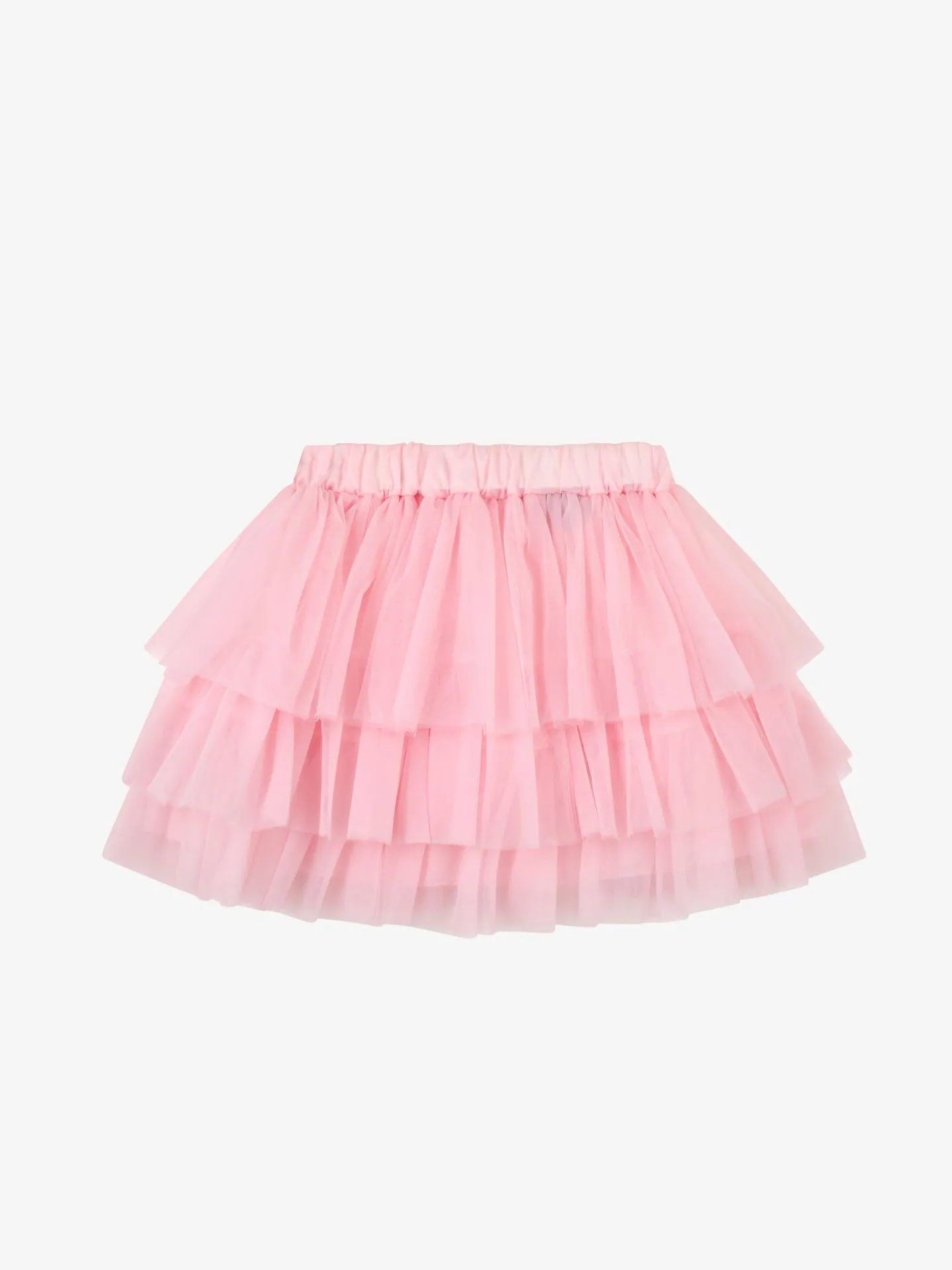 De Mackenzie rokset bestaat uit een superleuke gelaagde tule rok met een elastische tailleband, gecombineerd met een topje met lange mouwen en een schattig strikdetail op de voorkant.
