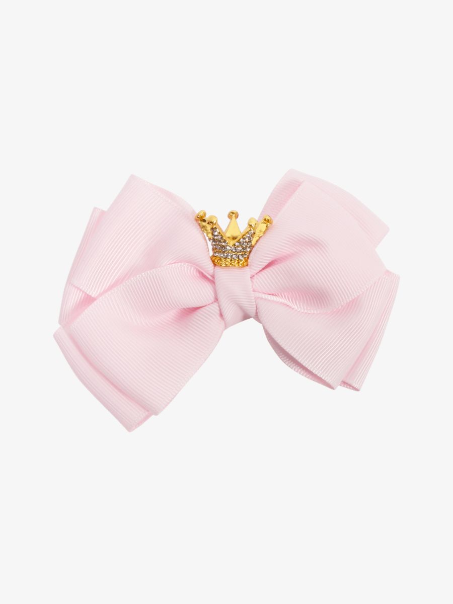 De Angels Face Haarstrik in Pale Pink maakt je outfit helemaal af. De haarstrik heeft een clip aan de achterkant en een goudkleurig kroontje met zilveren strass stenen. Afmeting: 12 cm