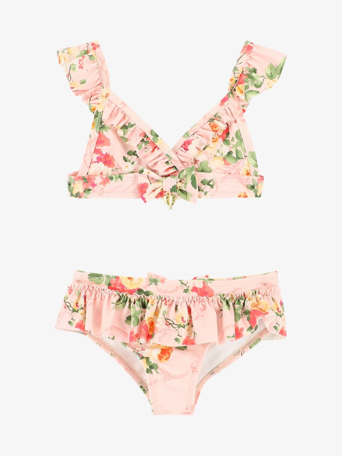 De Angels Face Algarve Bikini in de kleur Primrose Pale Pink heeft een gespsluiting aan de achterkant en verstelbare bandjes. De bikini heeft roezels en een strik.
