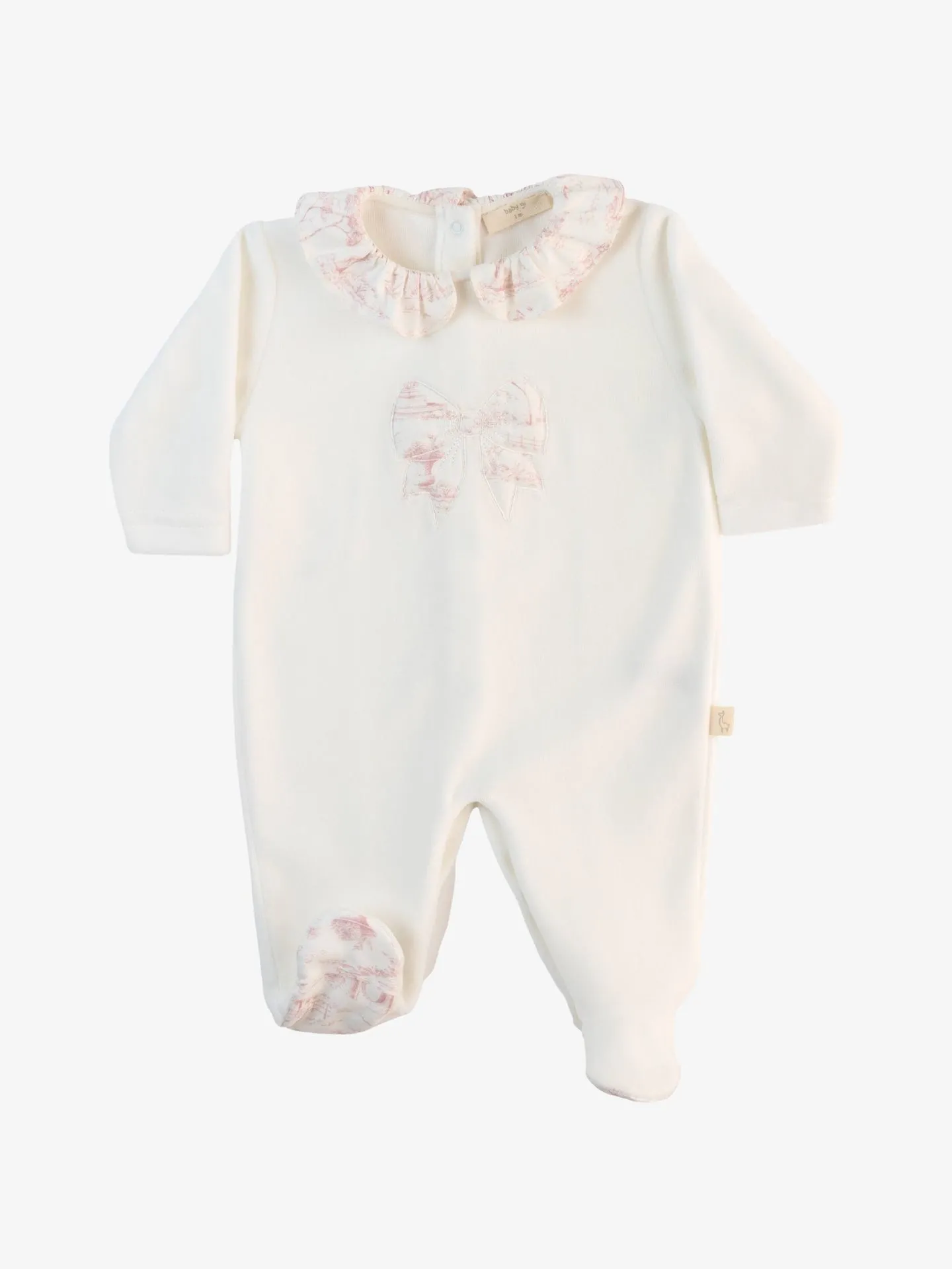Het Baby Gi Baby boxpakje uit de Vintage collectie heeft een velour kwaliteit, drukknoopsluiting aan de achterzijde, kraagje en voetjes. Combineer samen met de bijpassende muts.