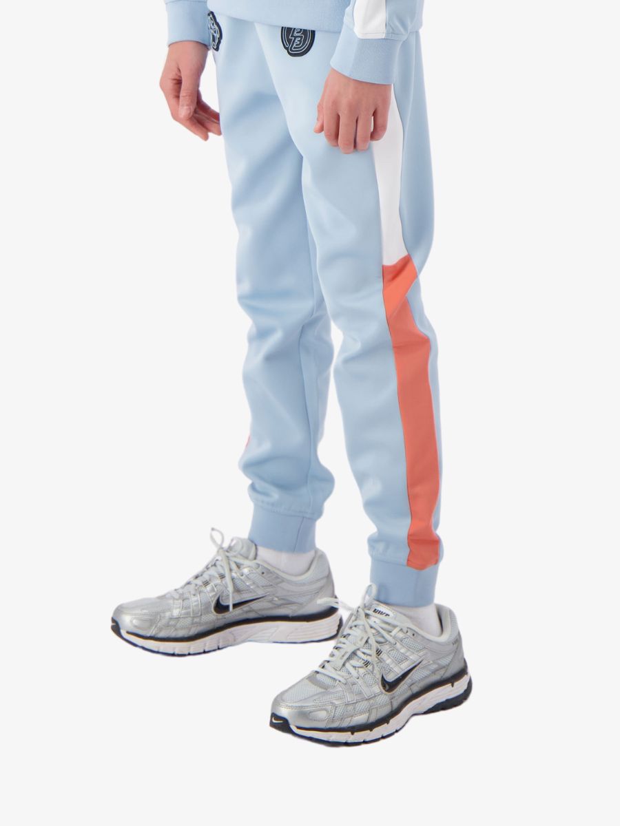 De Black Bananas Junior Victory Trackpants in Blauw heeft een elastische tailleband met aantrekkoorden, twee zakken met ritsen, twee merkemblemen en streepdetails aan de zijkanten. Combineer de broek met de bijpassende Black Bananas tracktop.