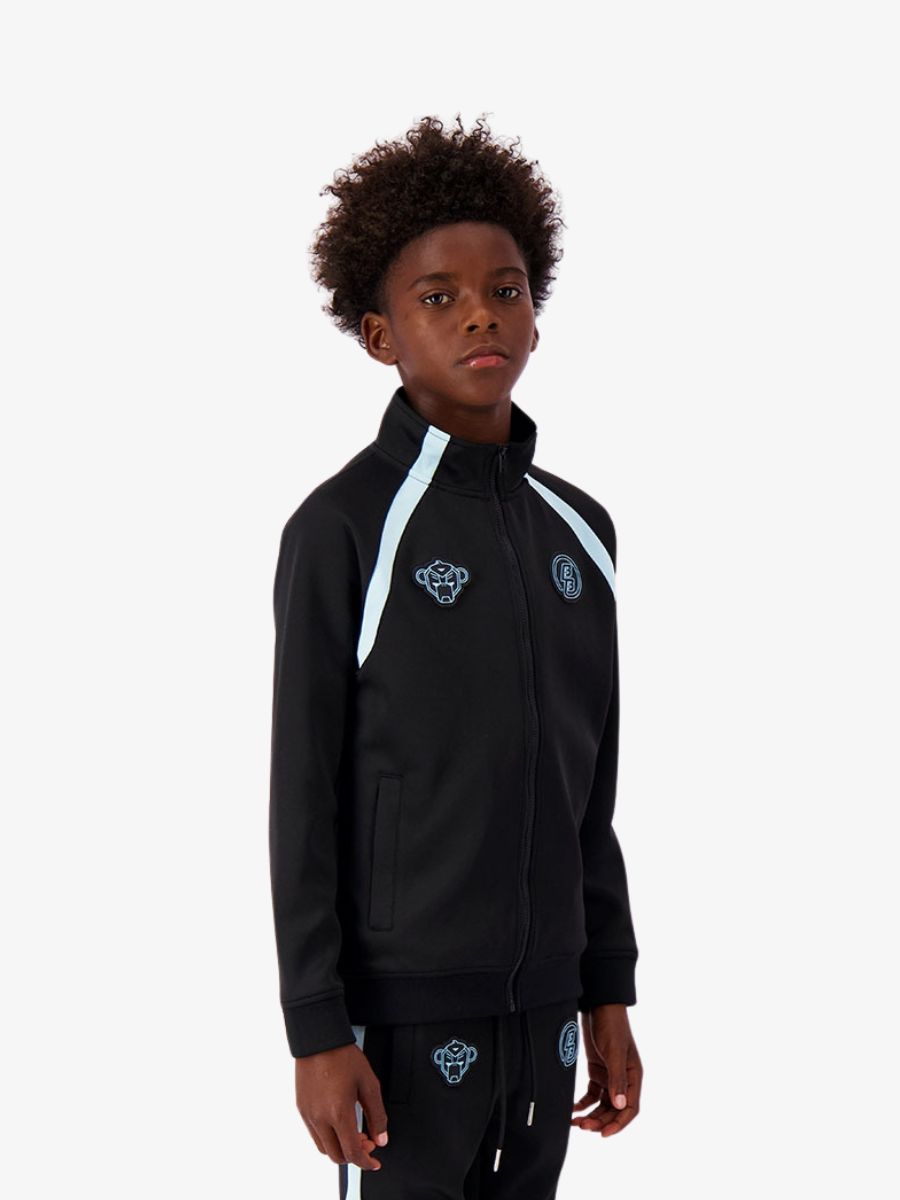 Het Black Bananas Compound Tracktop Vest in de kleur Zwart heeft steekzakken, een ritssluiting, twee logo emblemen en strepen als detail. Combineer met de bijpassende joggingbroek.