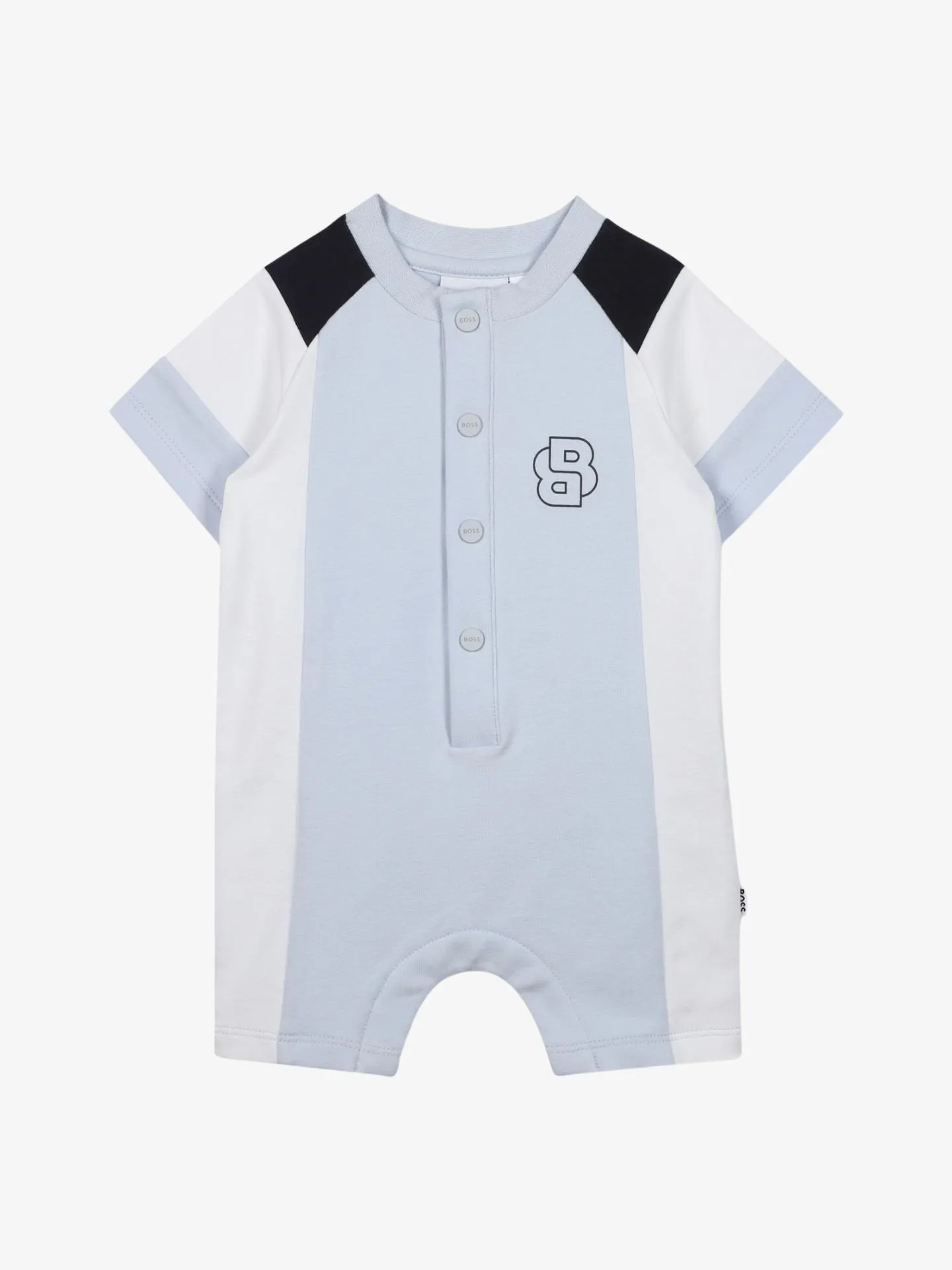 Dit speelpakje van BOSS Kidswear is uitgevoerd in sweatstof van stretchkatoen en houdt uw baby comfortabel in beweging. Kleurblokken. Gemakkelijke drukknopen. Double B-monogram.