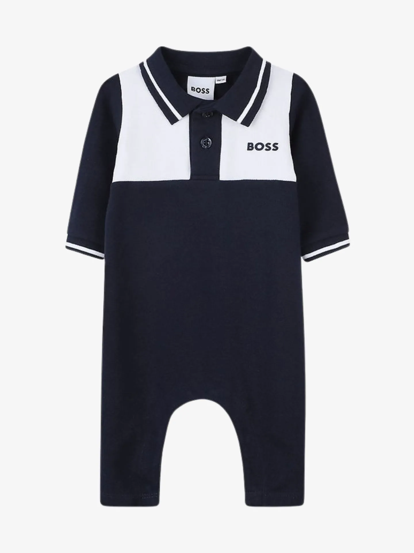 Deze jumpsuit van BOSS heeft een sportieve, chique look dankzij de polokraag en de gestreepte manchetten. Het bevat biologisch geteeld katoen verrijkt met elastaan en biedt comfort en lichtheid. De knoopsluiting aan de voorkant maakt het gemakkelijk om hem aan te trekken, terwijl de BOSS-logoprint op de borst voor een moderne touch zorgt. Een stijlvolle essential voor peuters.