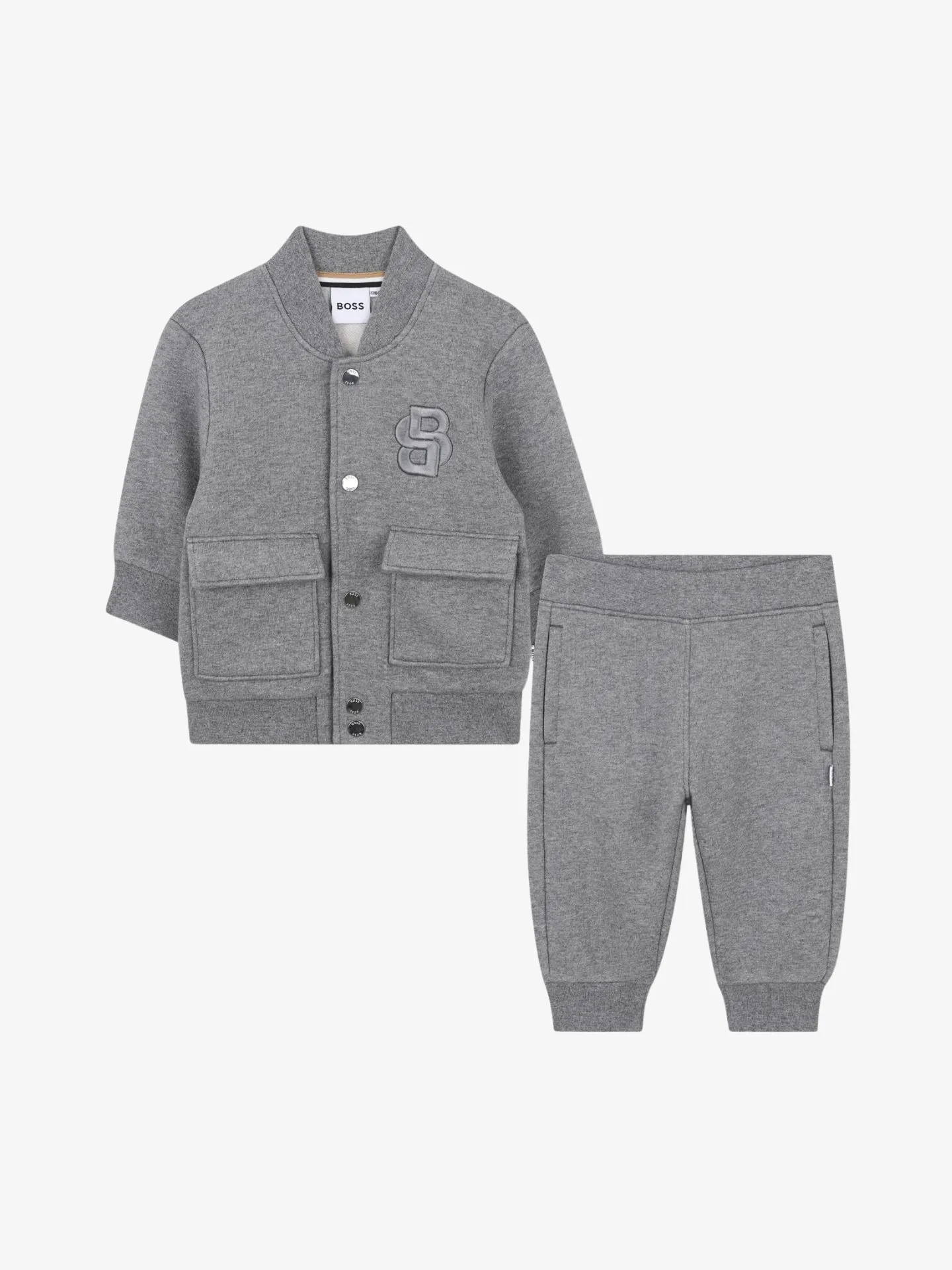 Deze joggingbroek van geborsteld fleece van BOSS combineert comfort en stijl voor dagelijks gebruik. Het vest, versierd met dubbel-B borduursel in relief, sluit met drukknopen en heeft praktische klepzakken. De bijpassende broek is voorzien van een elastische tailleband en steekzakken. Discrete logolabels maken deze zachte en functionele set compleet.