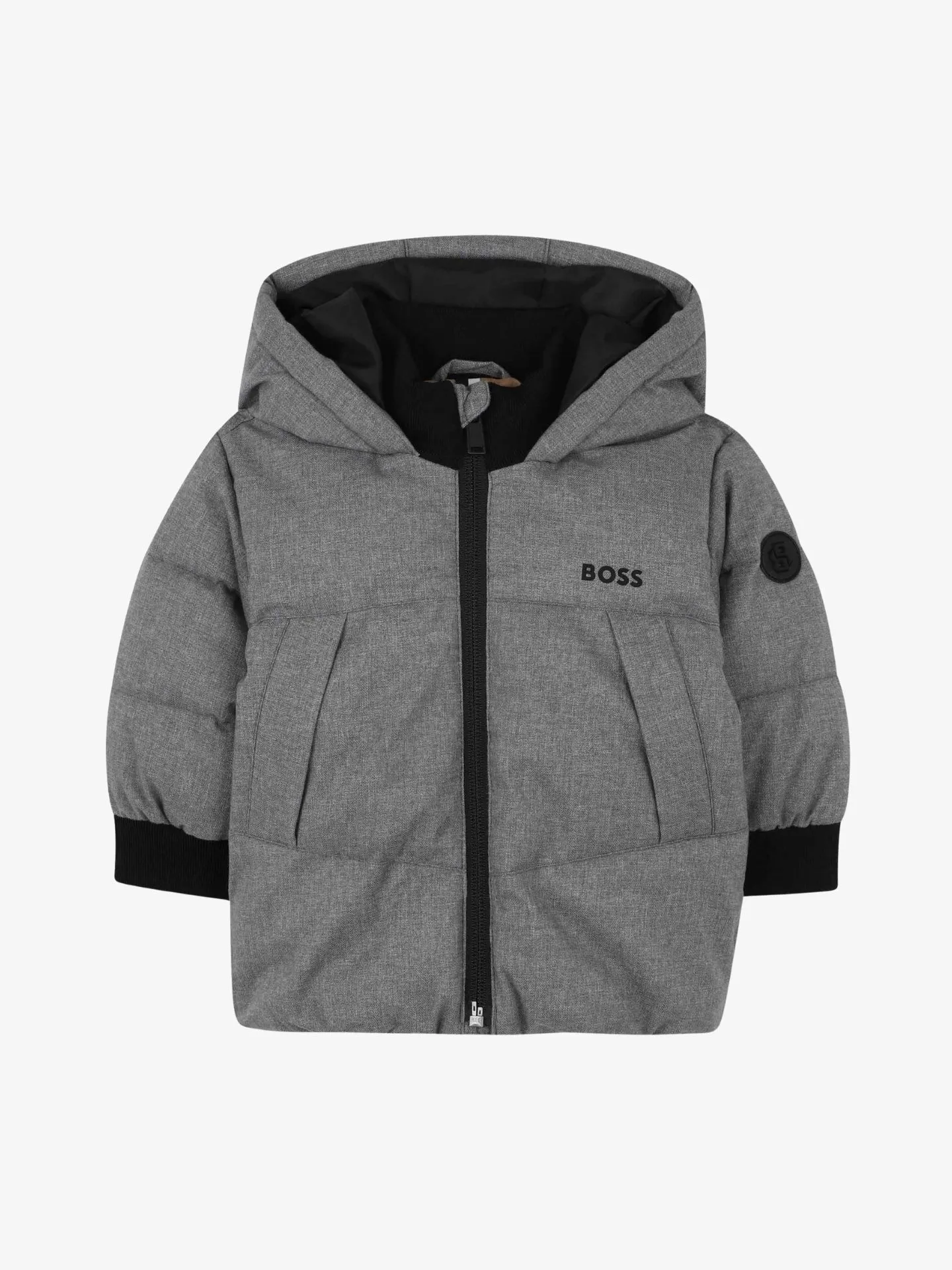 Dit gewatteerde jack van BOSS polyester met capuchon en flanellen effect combineert comfort met een nonchalante stijl. De twee zakken aan de voorkant en de BOSS-logoprint op de borst zorgen voor een praktische en elegante touch, terwijl de siliconen badge op de schouder voor een modern en verfijnd detail zorgt. Een perfect model voor een sportieve en toch verfijnde look.